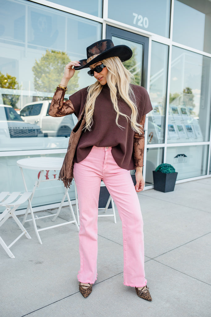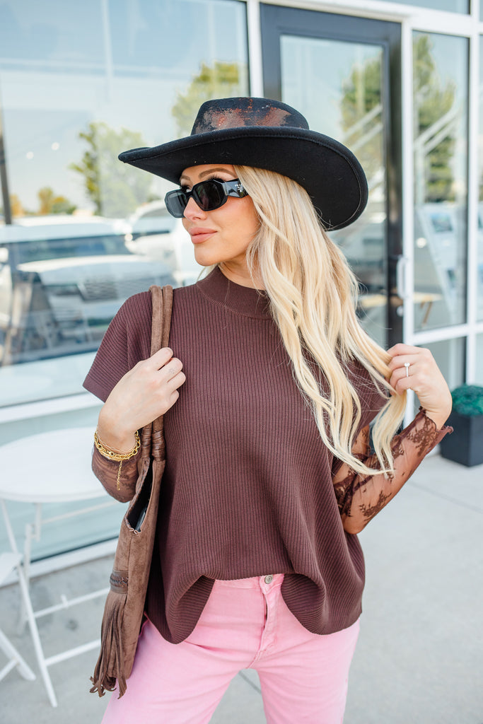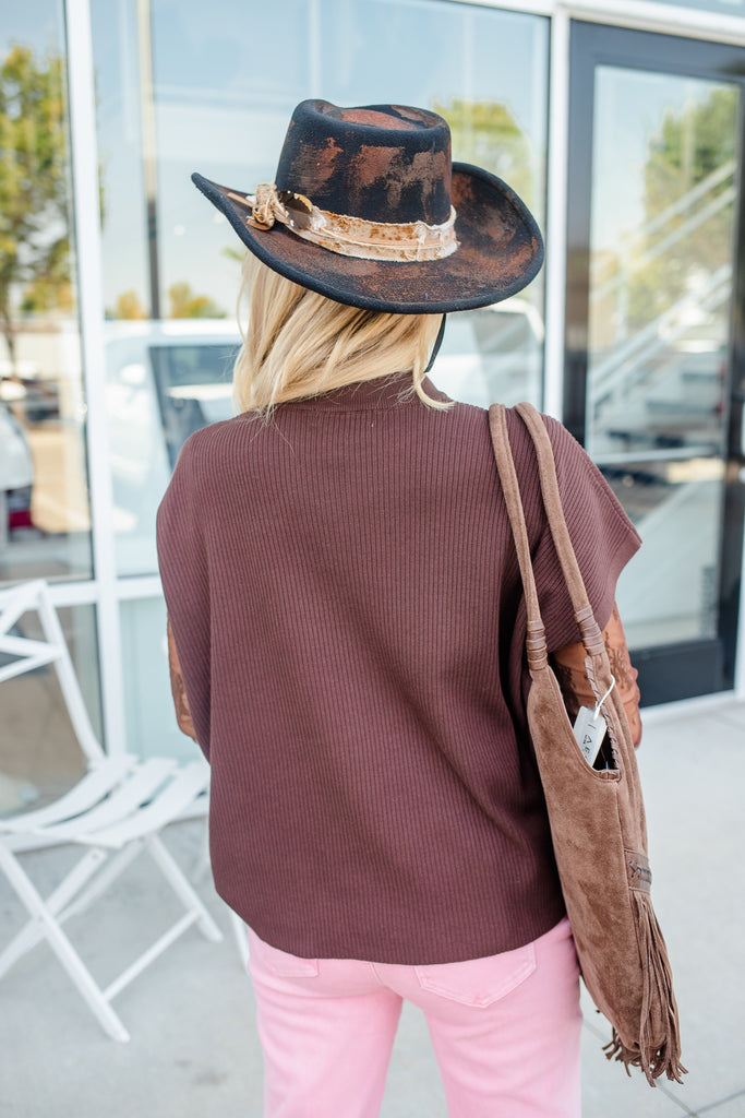 Mock Neck Boxy Top - Brown