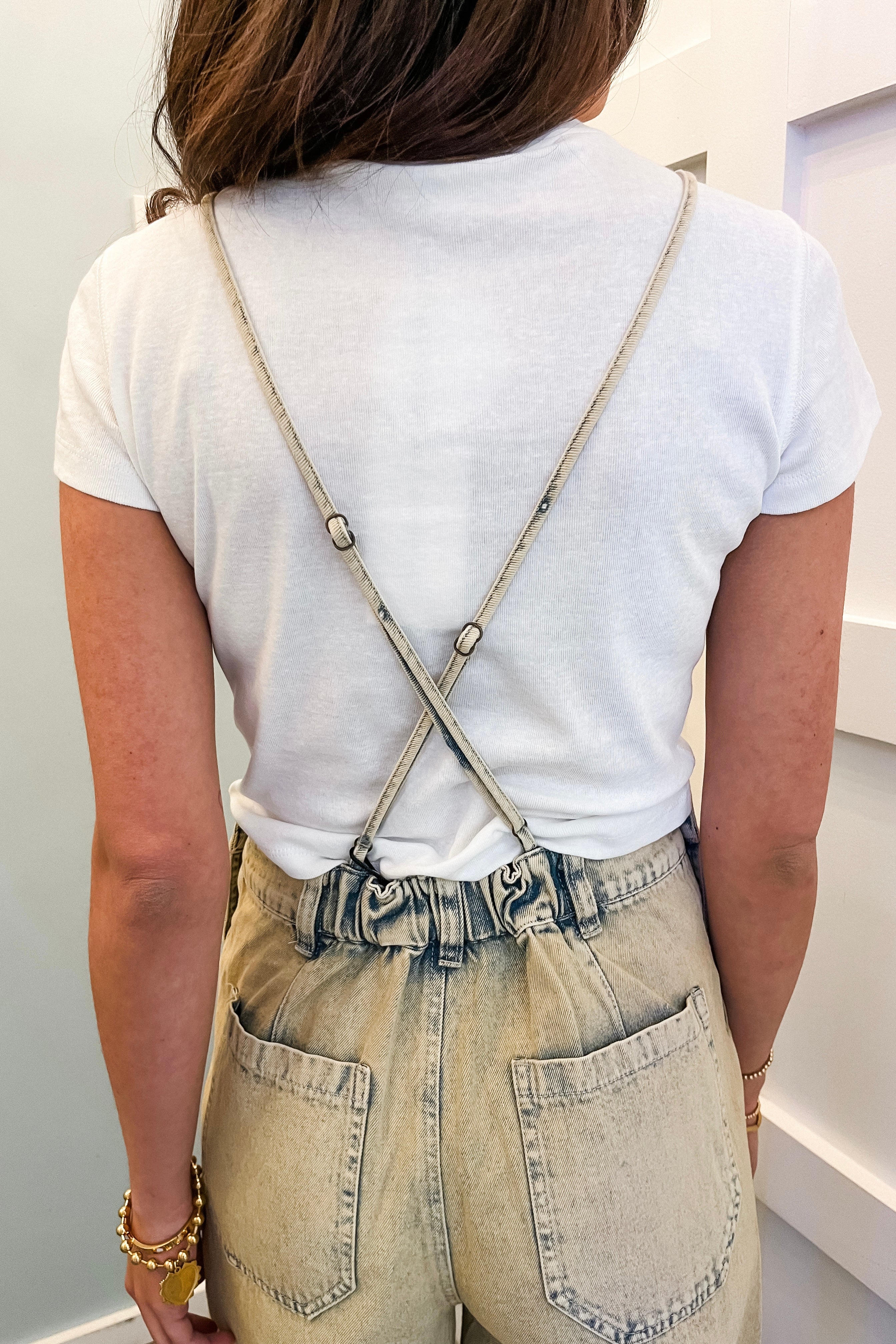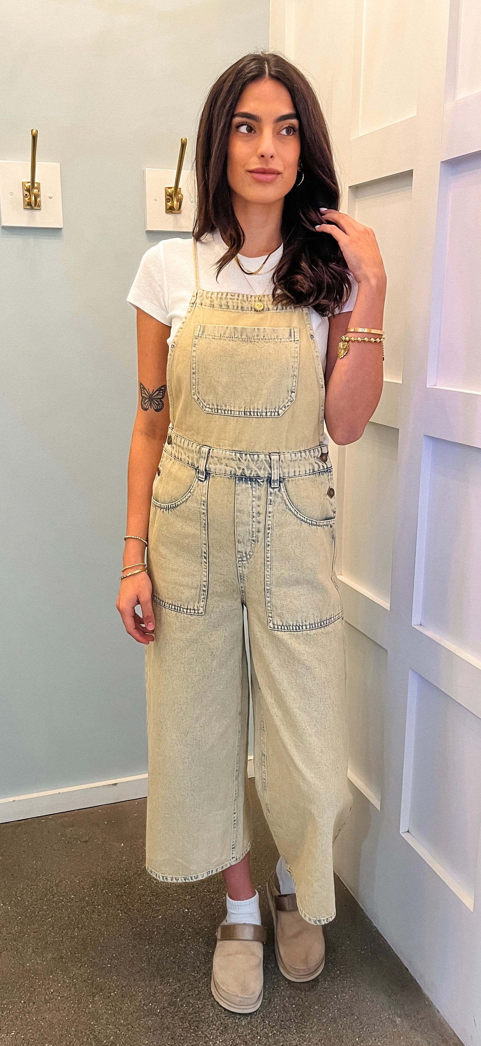 Devlin Cross Back Overalls - Sand Denim / Small is backordered and will ship as soon as it is back in stock.