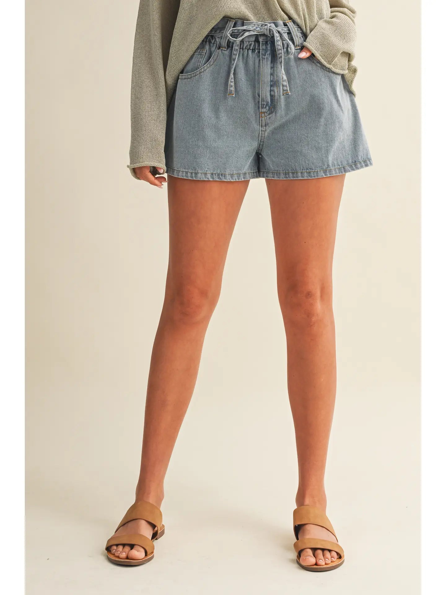 Geo Paperbag Denim Shorts - Small is backordered and will ship as soon as it is back in stock.