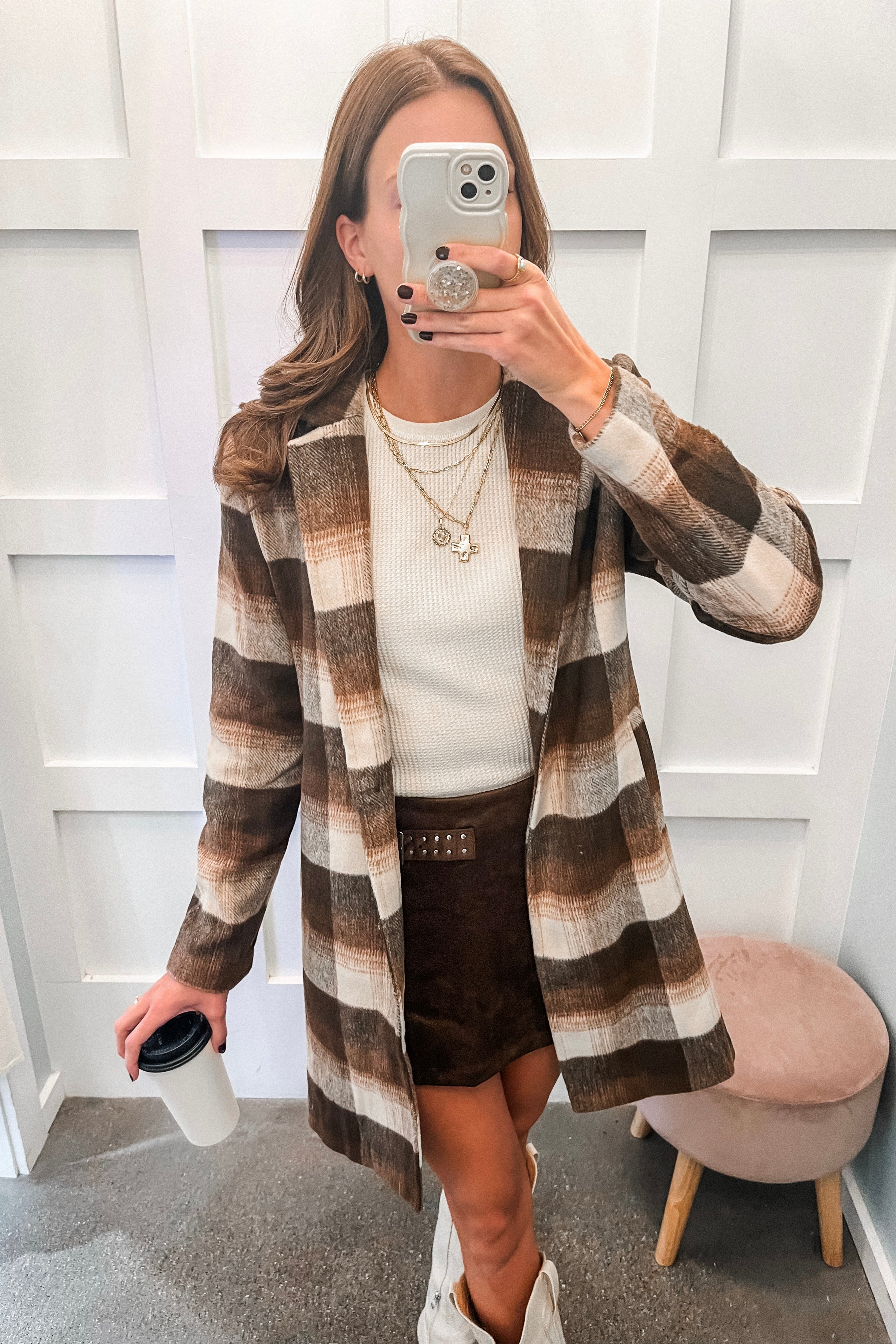 Huntington Plaid Coat - Chocolate - Chocolate / Small is backordered and will ship as soon as it is back in stock.