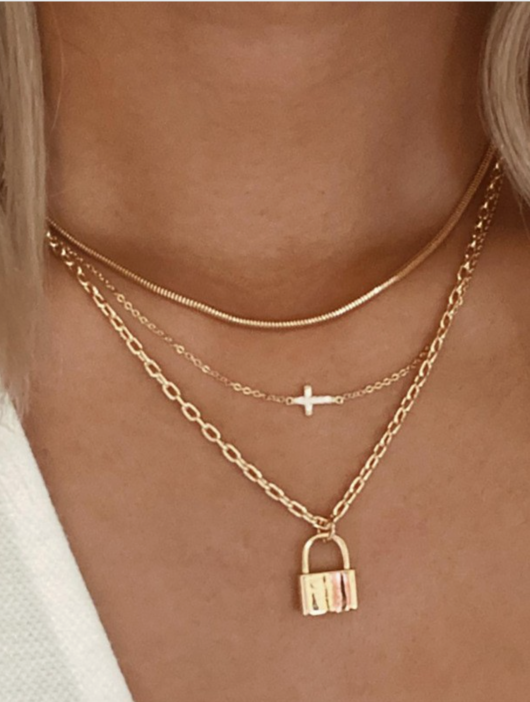 Lock + Cross Layered Necklace