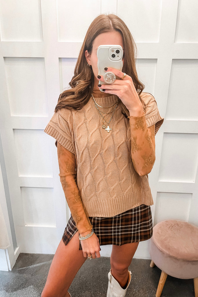 Rix Cable Knit Sweater Vest - Dark Taupe
