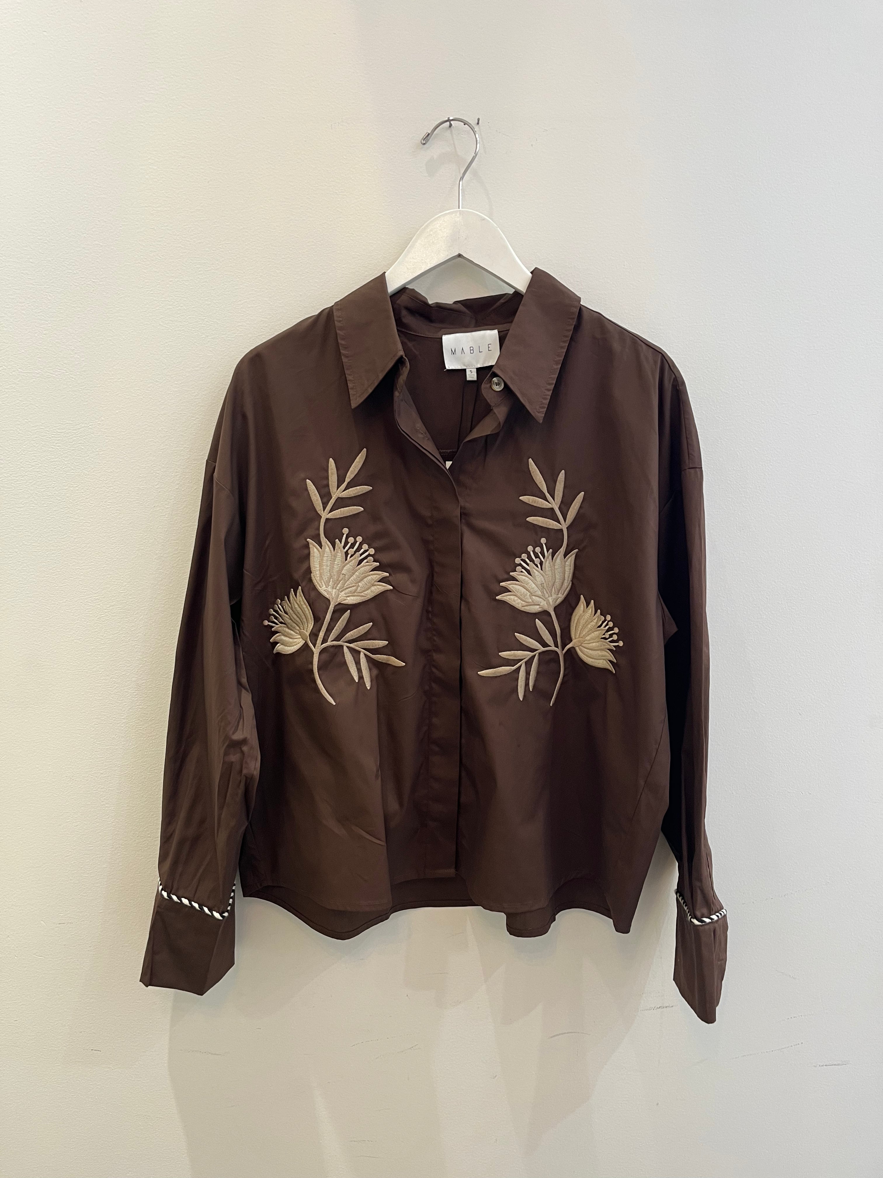 Long sleeve embroidered button down shirt