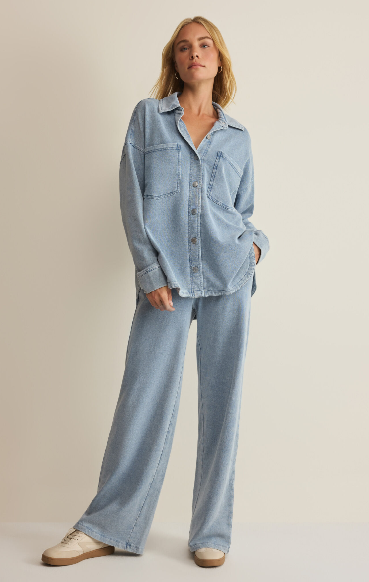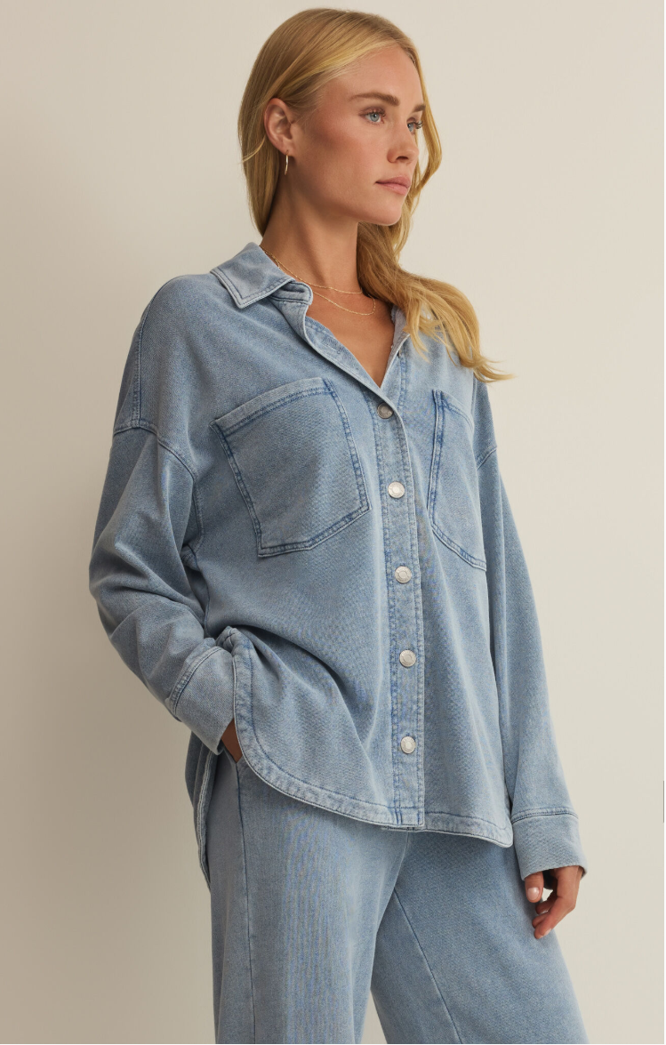 Z Supply | All Day Knit Denim Jacket - Ocean Air Indigo - Ocean Air Indigo / Small is backordered and will ship as soon as it is back in stock.