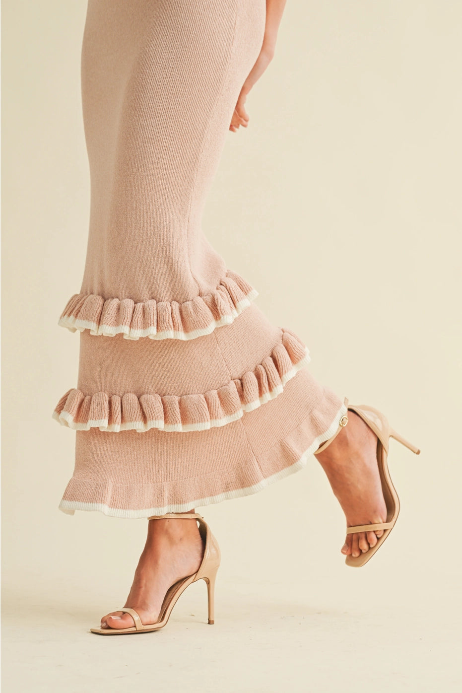 Be Mine Ruffled Maxi Dress - Mauve/White / Small is backordered and will ship as soon as it is back in stock.