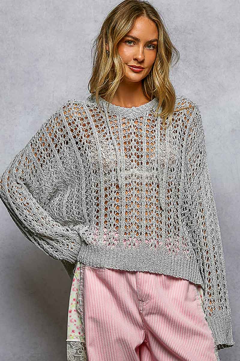 Airy Openwork Hoodie - Light Grey / Small is backordered and will ship as soon as it is back in stock.