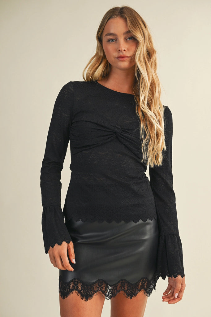 Allegra Lace Twist Bust Top - Black / Small is backordered and will ship as soon as it is back in stock.