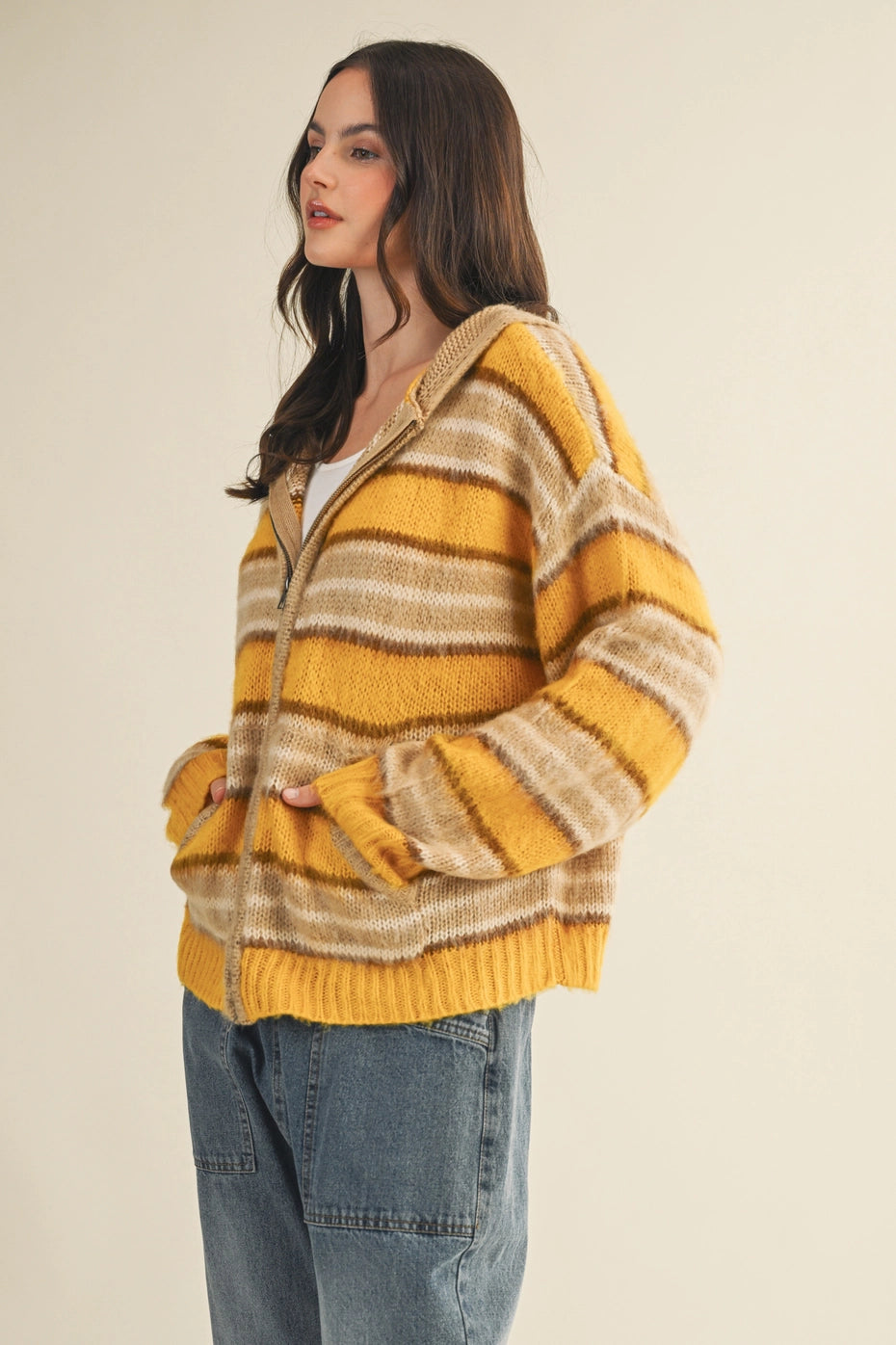 Brantley Striped Hooded Jacket - Mustard / Small is backordered and will ship as soon as it is back in stock.