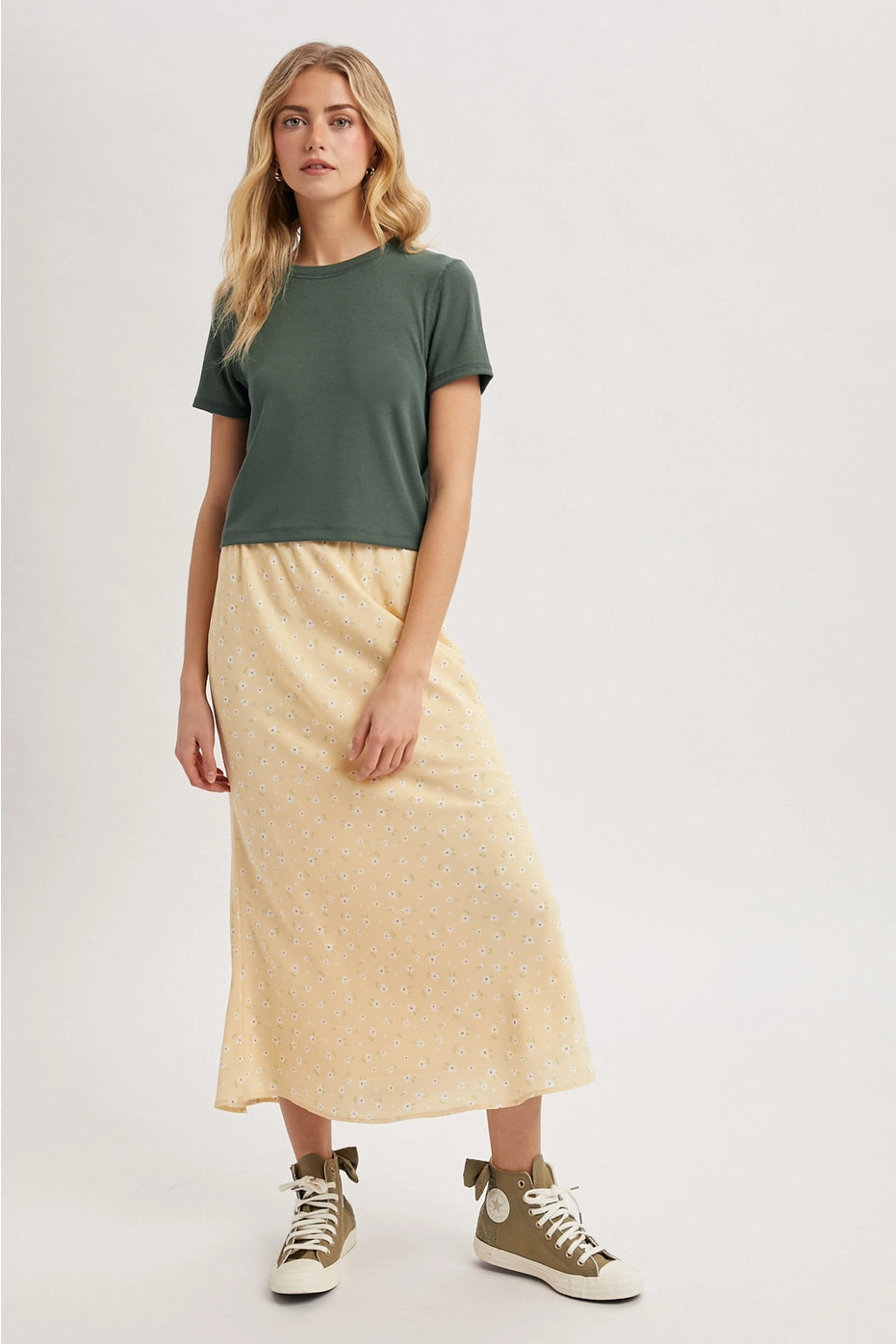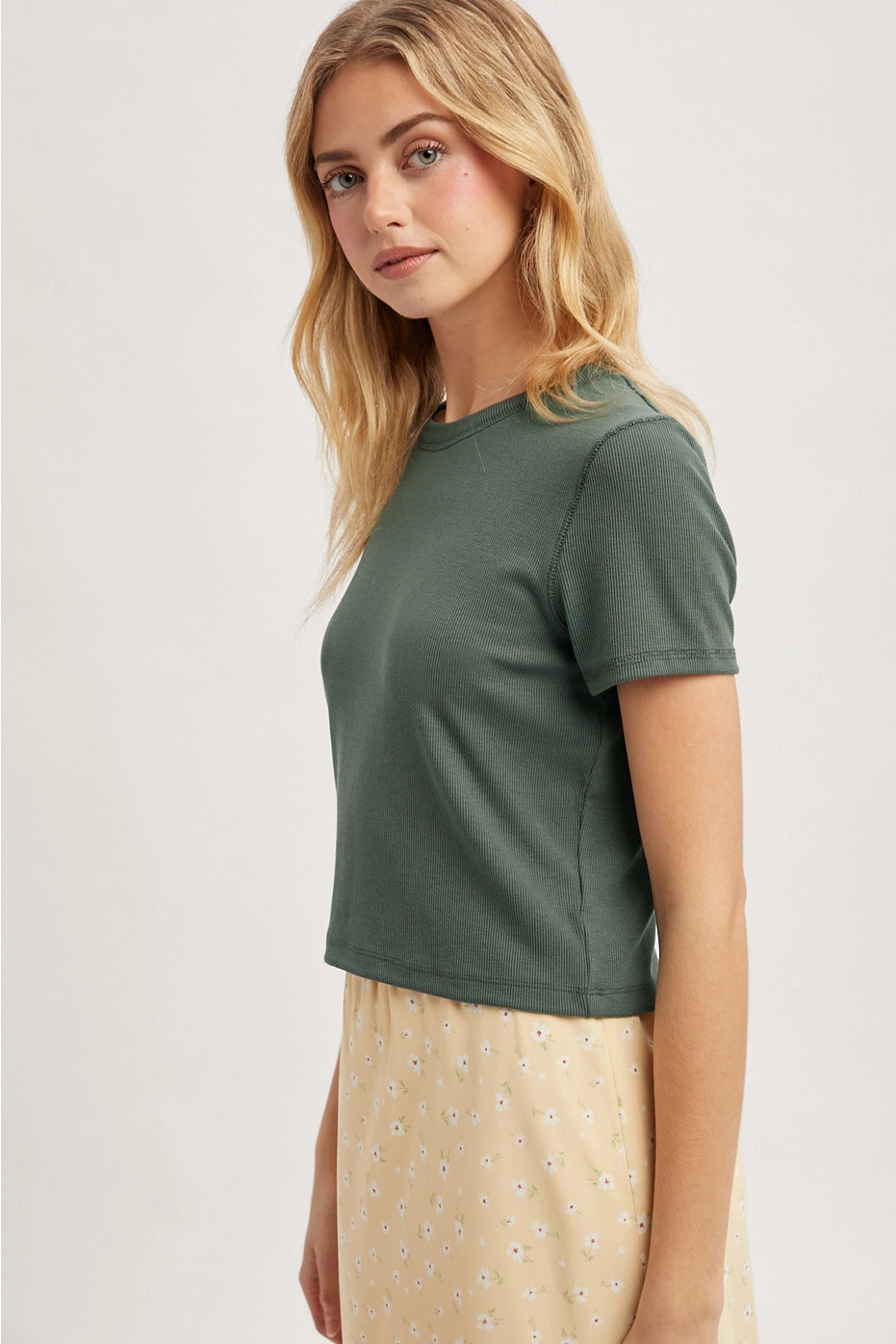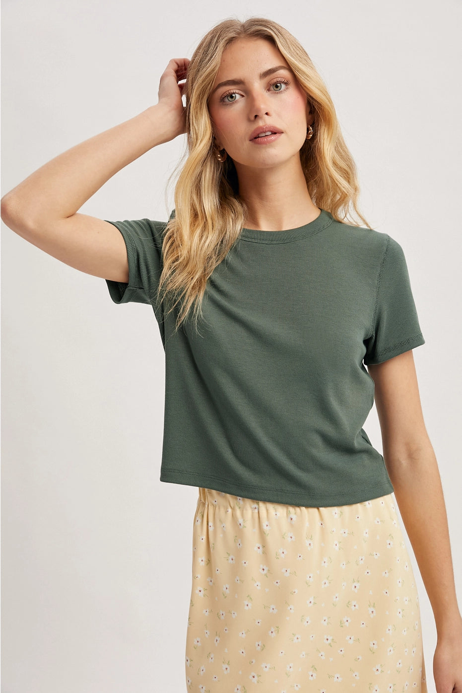 RIBBED RELAXED CROP KNIT TEE - SHORT SLEEVE-ROUND NECK65% RAYON, 30% POLYESTER, 5% SPANDEX