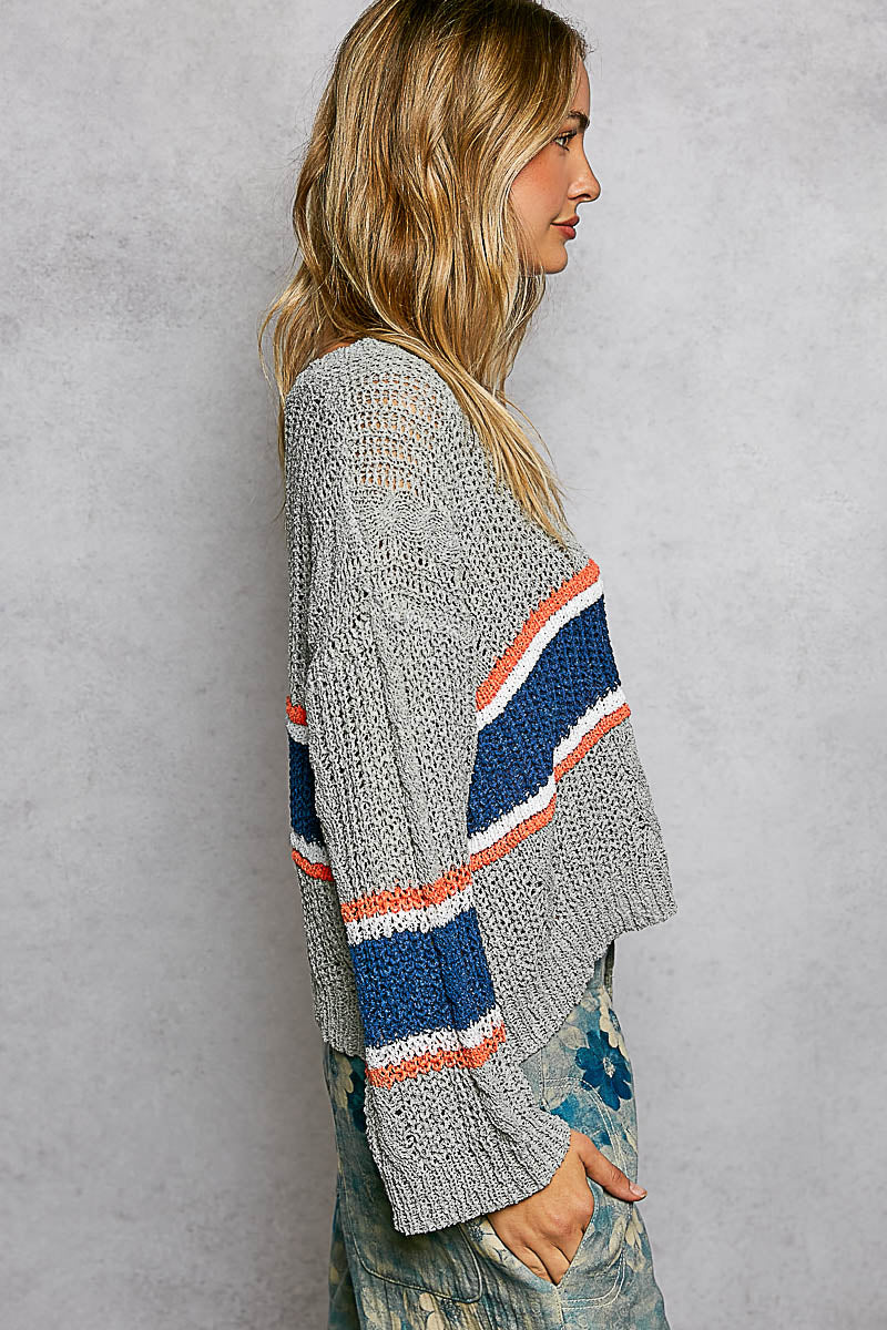 Midnight Varsity Stripe Sweater - Grey / Small is backordered and will ship as soon as it is back in stock.