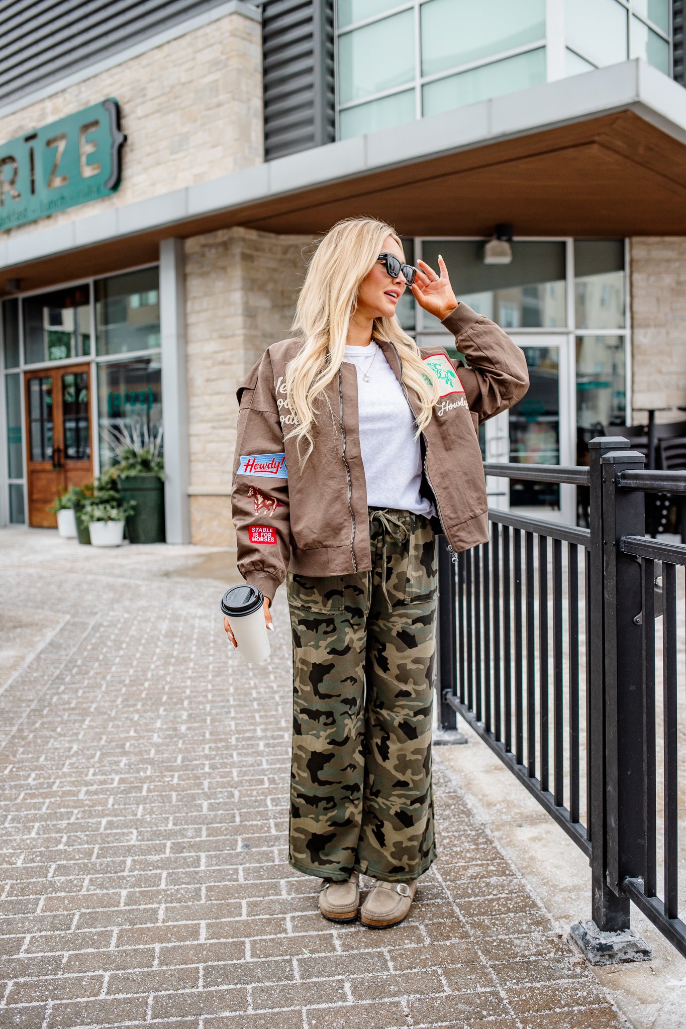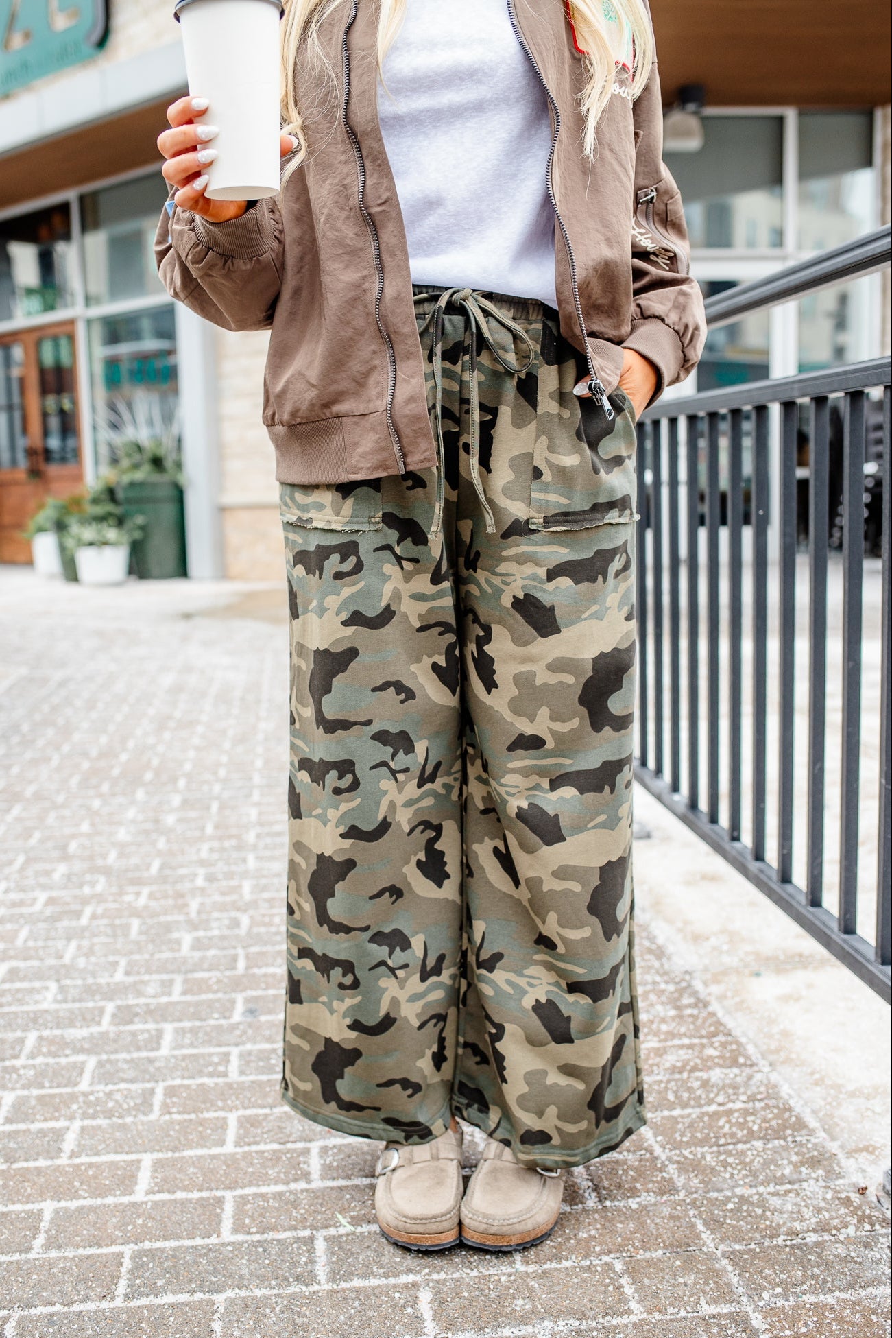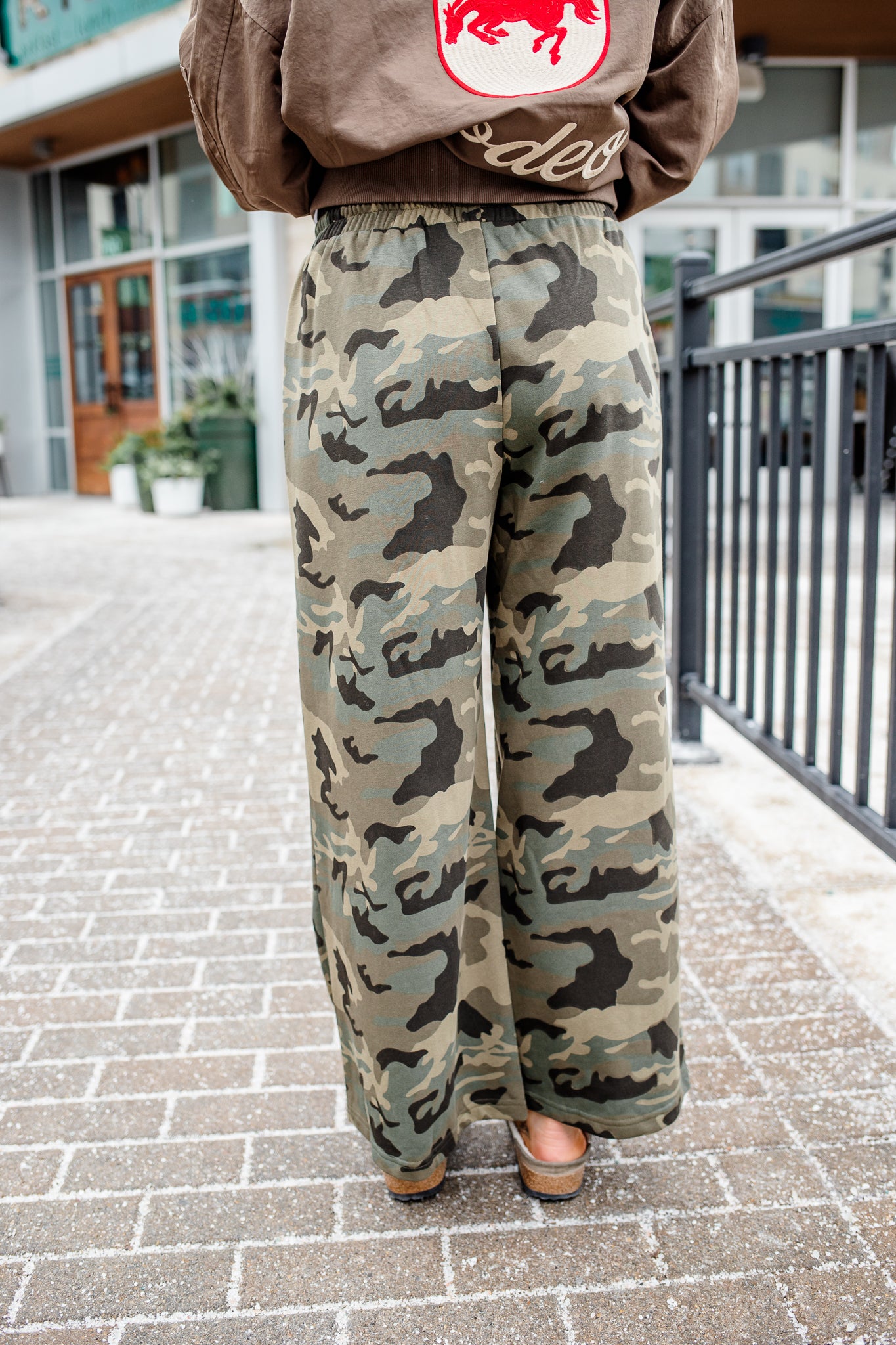 Camo Wide Leg Pants - Camouflage / Small is backordered and will ship as soon as it is back in stock.