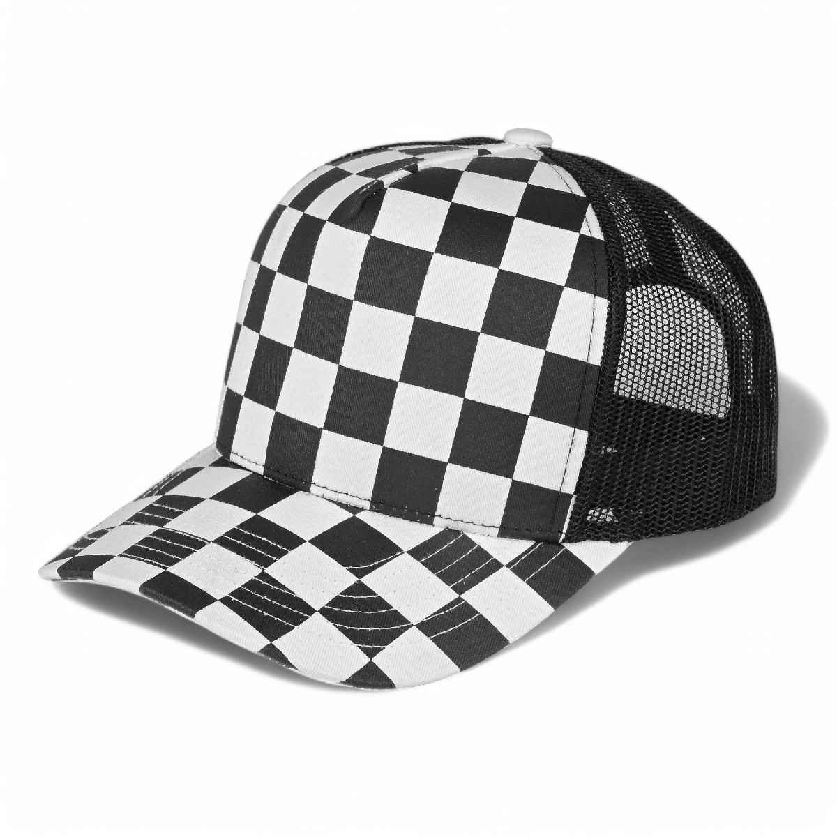 A checker print trucker hat that's giving effortless cool. The meshback keeps you cool on hot days and the black and white checker print goes with everything. Your new go-to hat for bad hair days and good vibes.