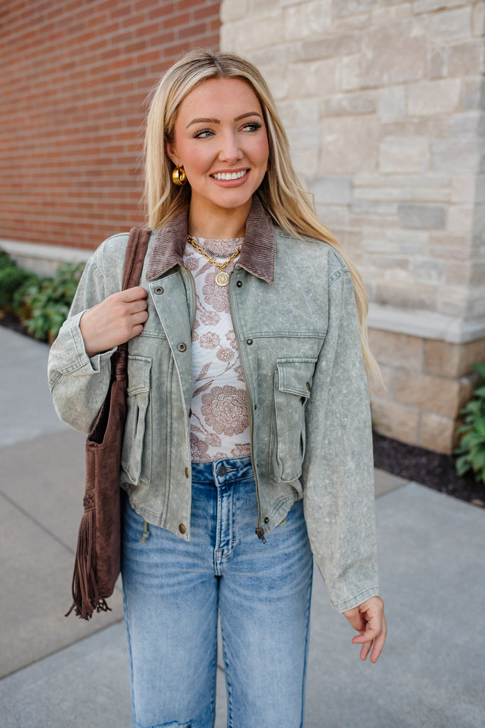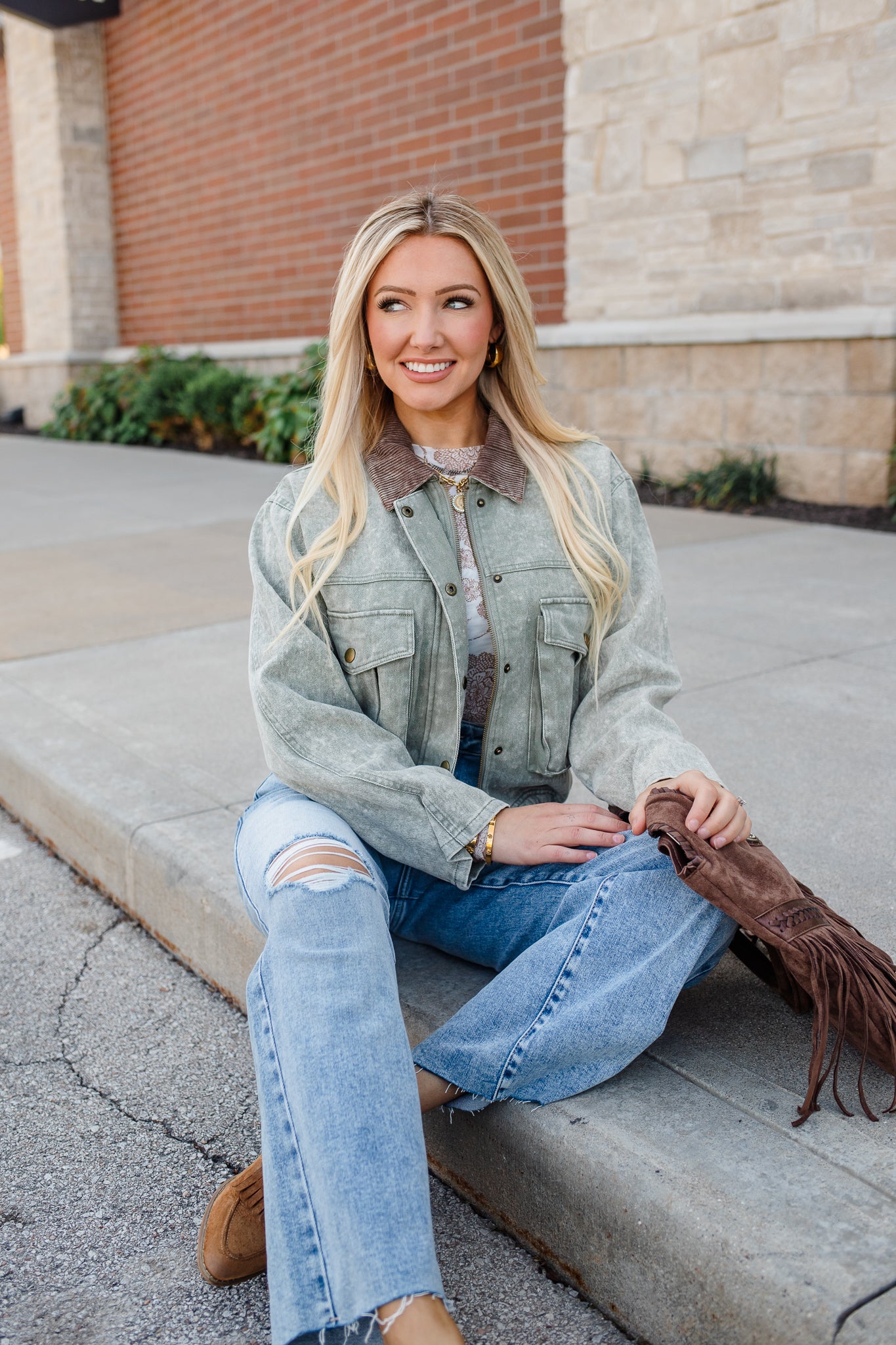 Corduroy Collar Jacket - Olive - Olive / Small is backordered and will ship as soon as it is back in stock.