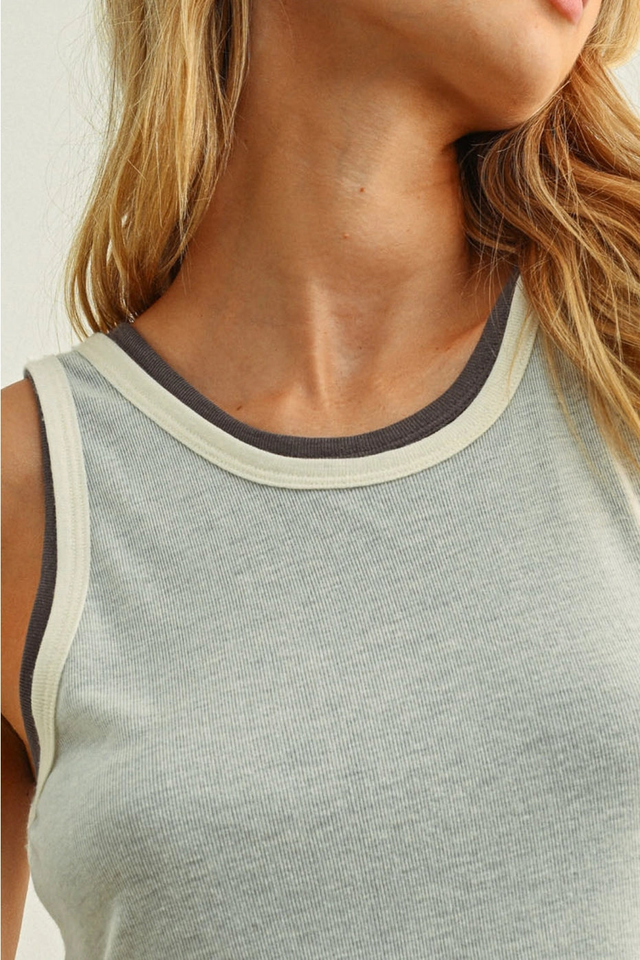 Double Take Layered Racerback Tank - Cream/Charcoal