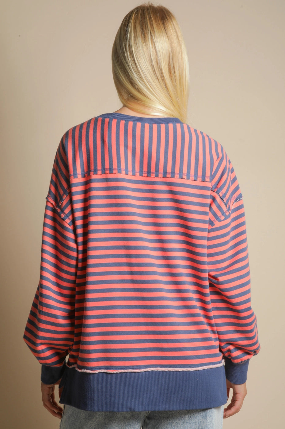 Eden Striped Oversized Crewneck - Coral/Navy / Small is backordered and will ship as soon as it is back in stock.