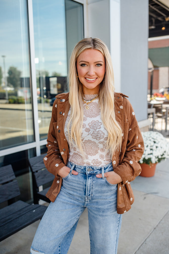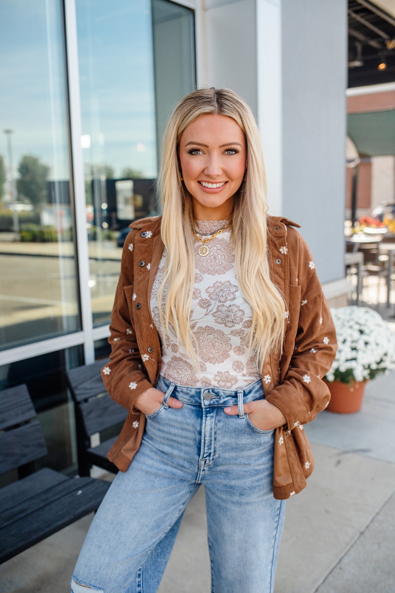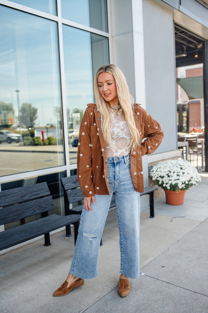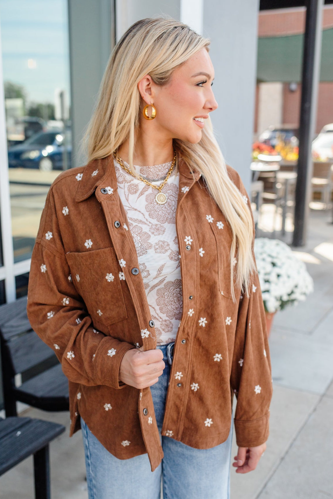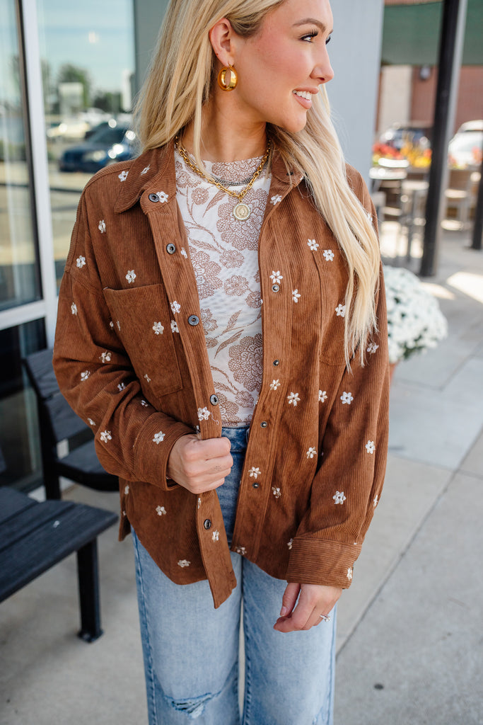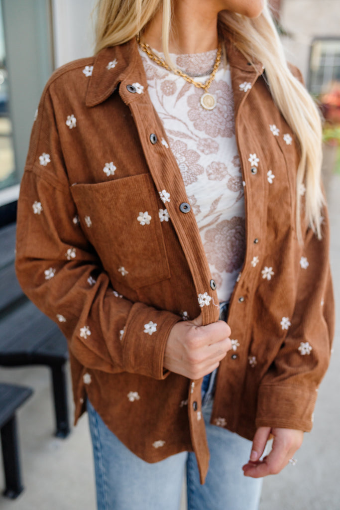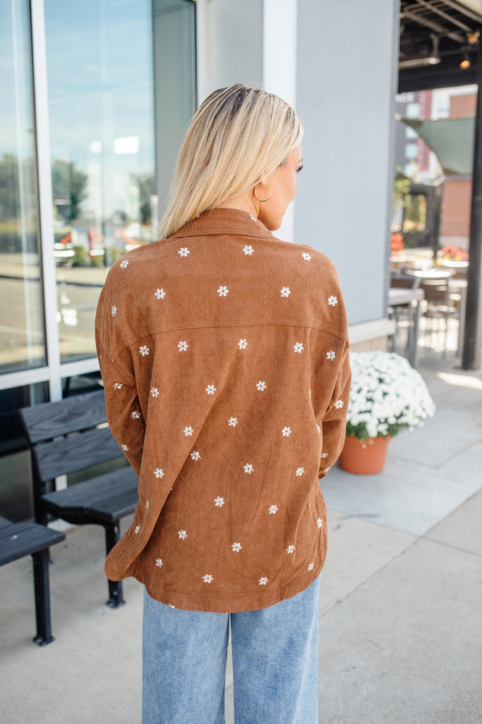 Emmy Embroidered Corduroy Shirt - Brown / Small is backordered and will ship as soon as it is back in stock.