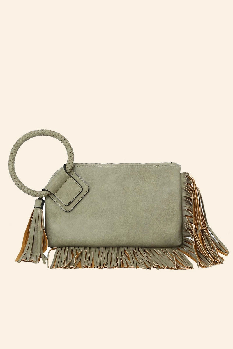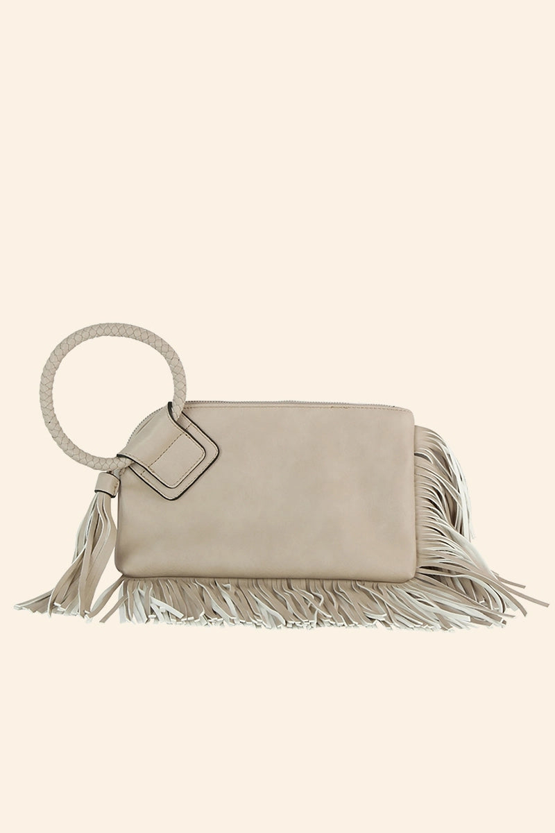 A clutch bag with fringe cuff and tassel detail that's equal parts boho and chic. The wristlet strap keeps your hands free while the roomy interior fits all your essentials. Available in five gorgeous colors to match every mood and outfit.