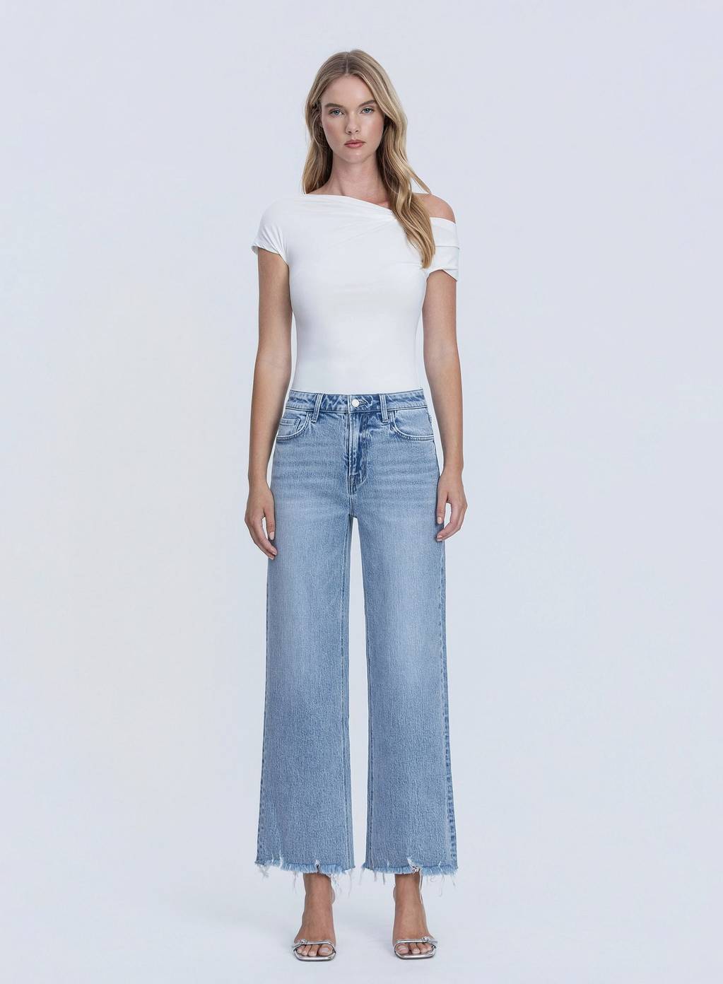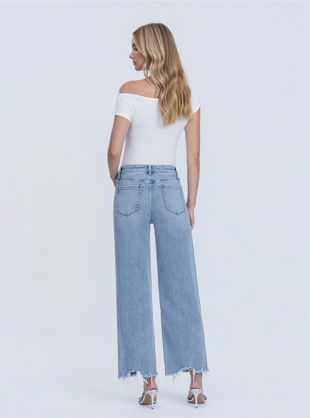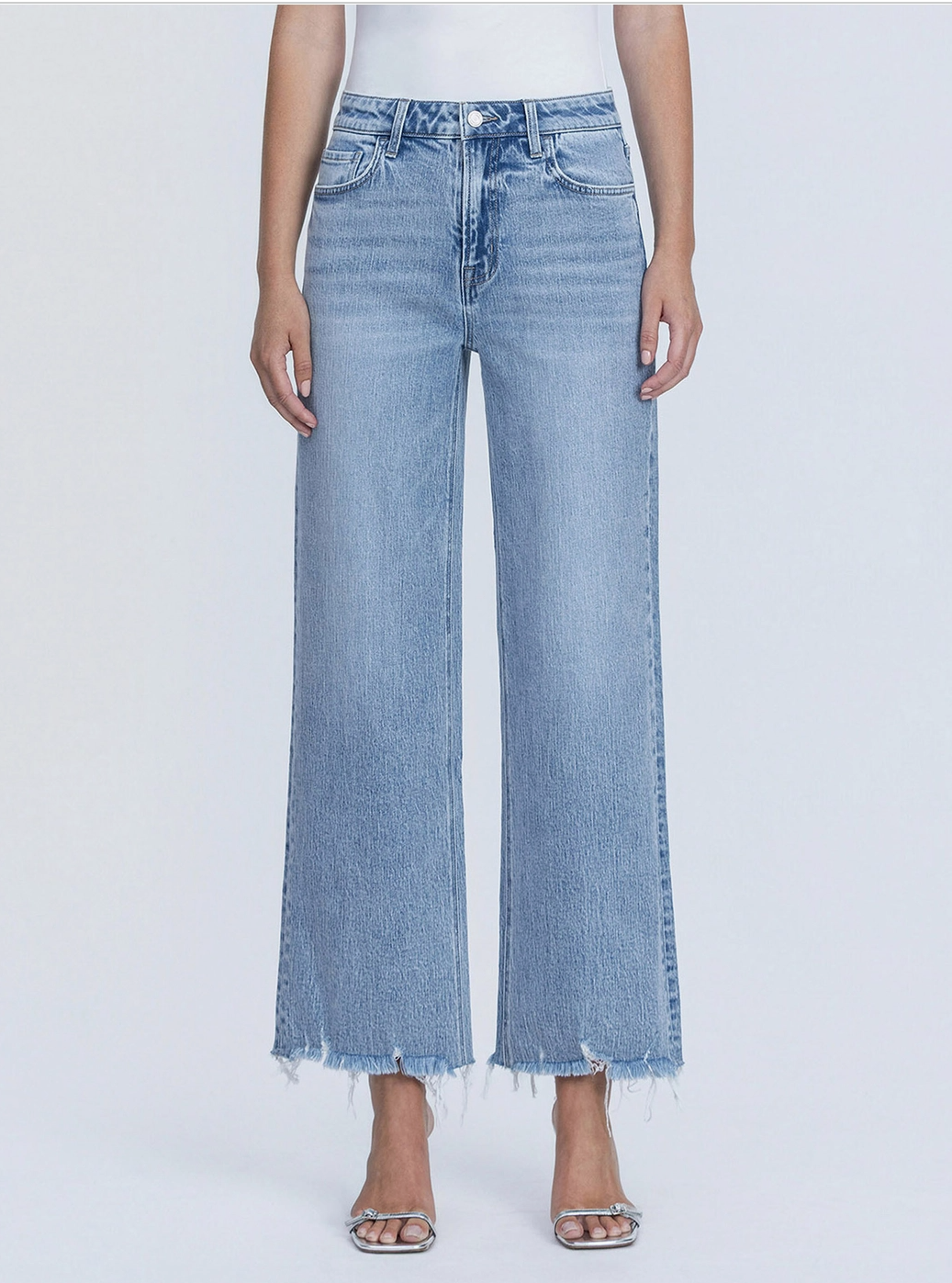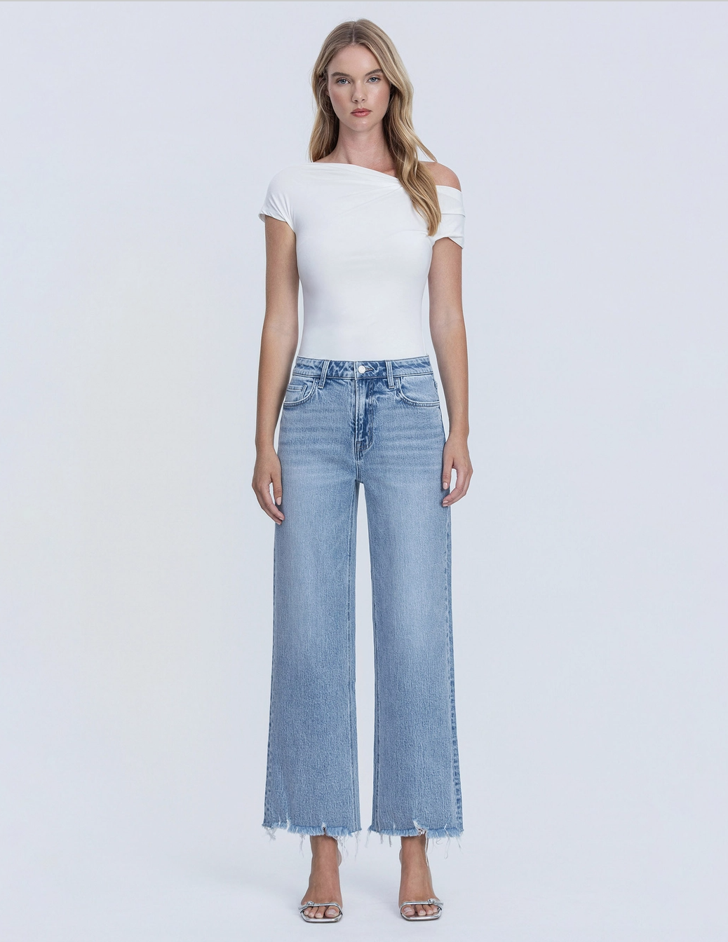 The perfect wide leg jean with a frayed ankle hem that adds just the right amount of edge. The mid rise sits comfortably and the wide leg silhouette is endlessly flattering. These are the jeans you grab when you want to look good without overthinking it.