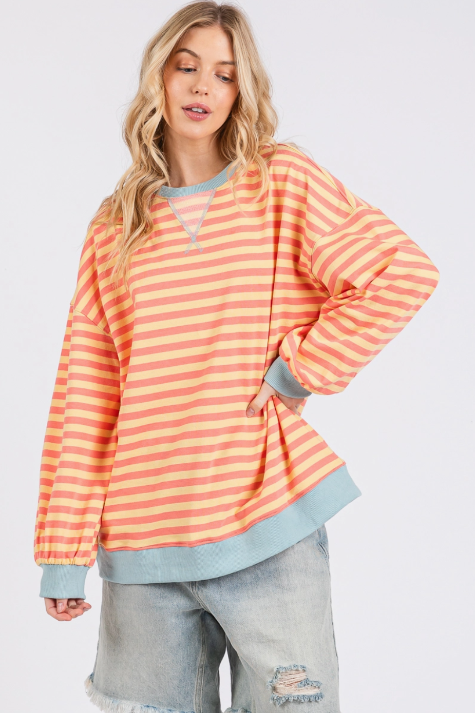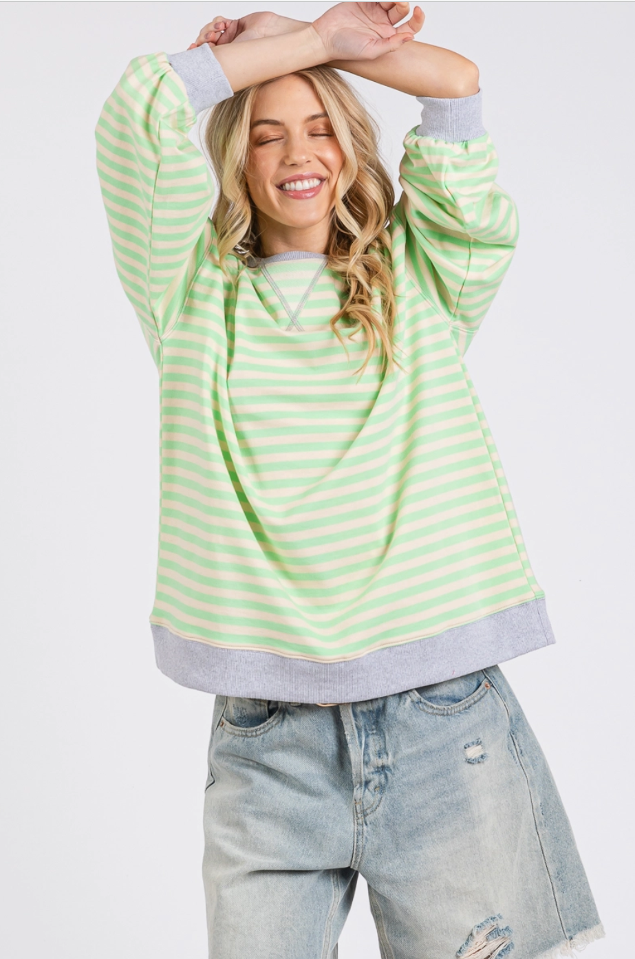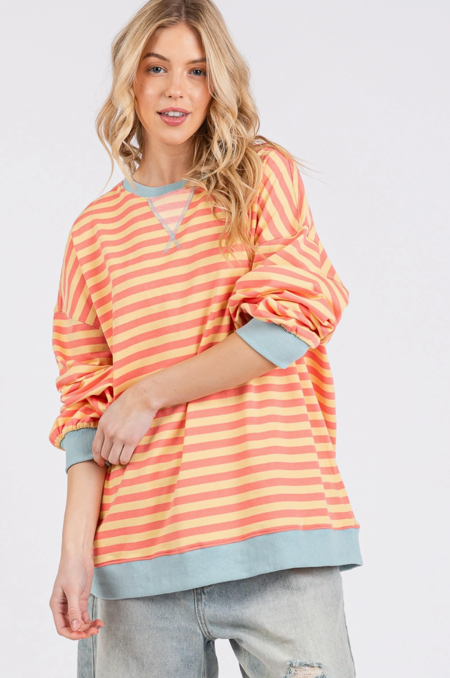 Brighten up your casual wardrobe with this Multi-Color Striped Sweatshirt. Featuring bold, vibrant stripes in a variety of hues, this sweatshirt is both cozy and stylish. The relaxed fit and soft, breathable fabric make it perfect for all-day comfort, whether you're lounging at home, running errands, or enjoying outdoor activities like pickleball.