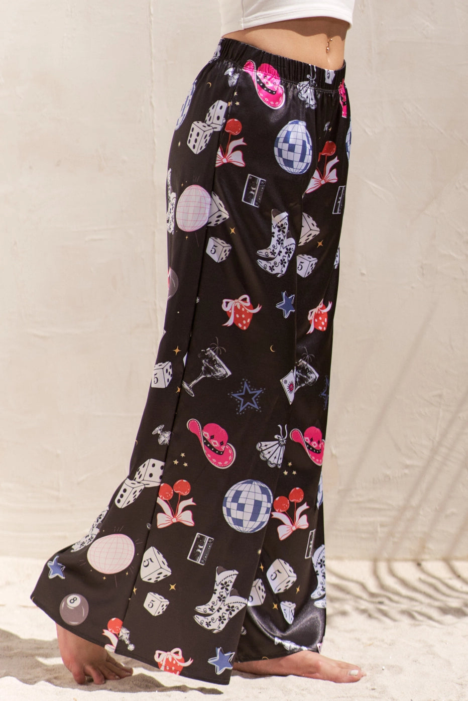 - Satin - Fun pattern - Elastic waistband - Straight leg - Pockets-100% POLYESTER