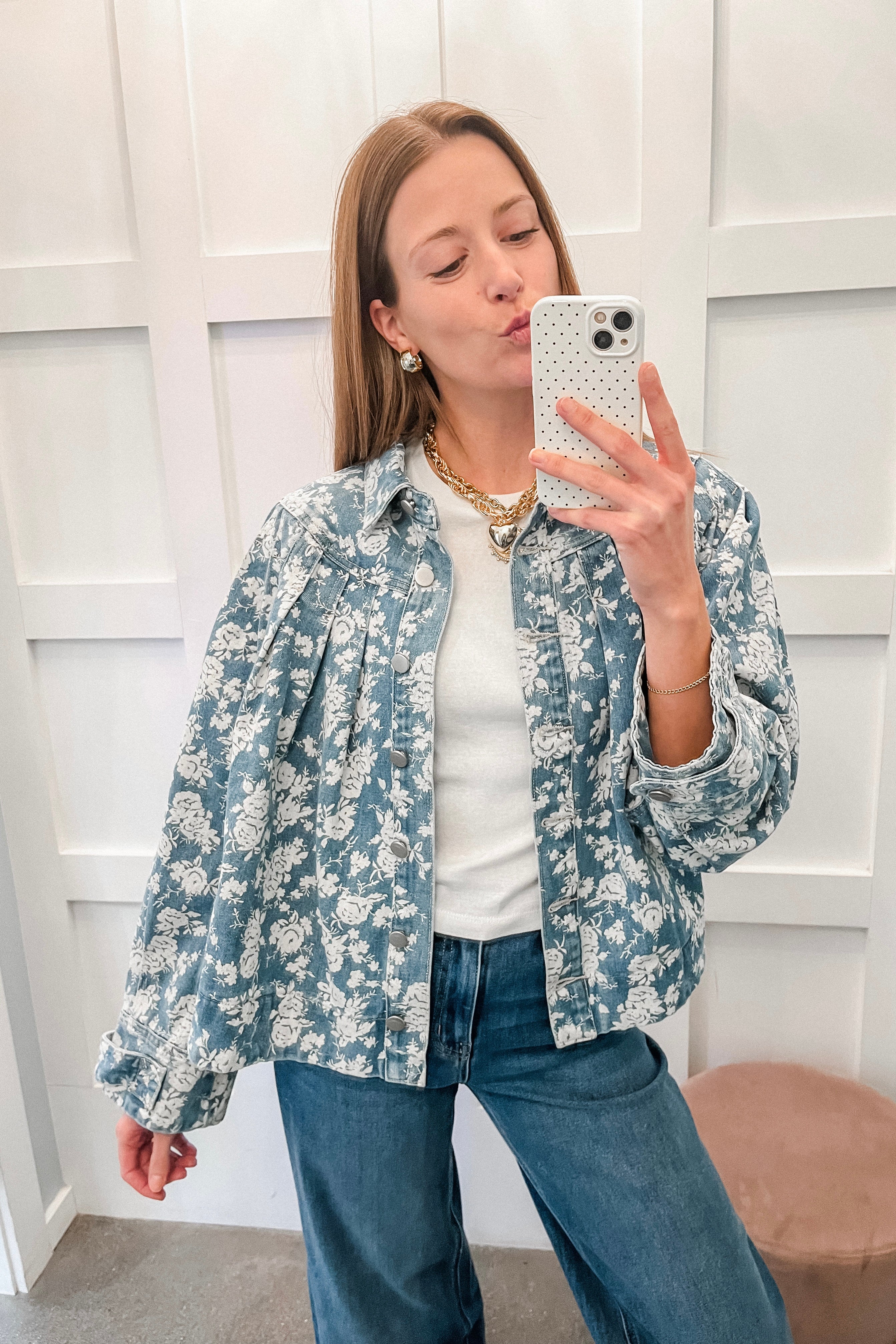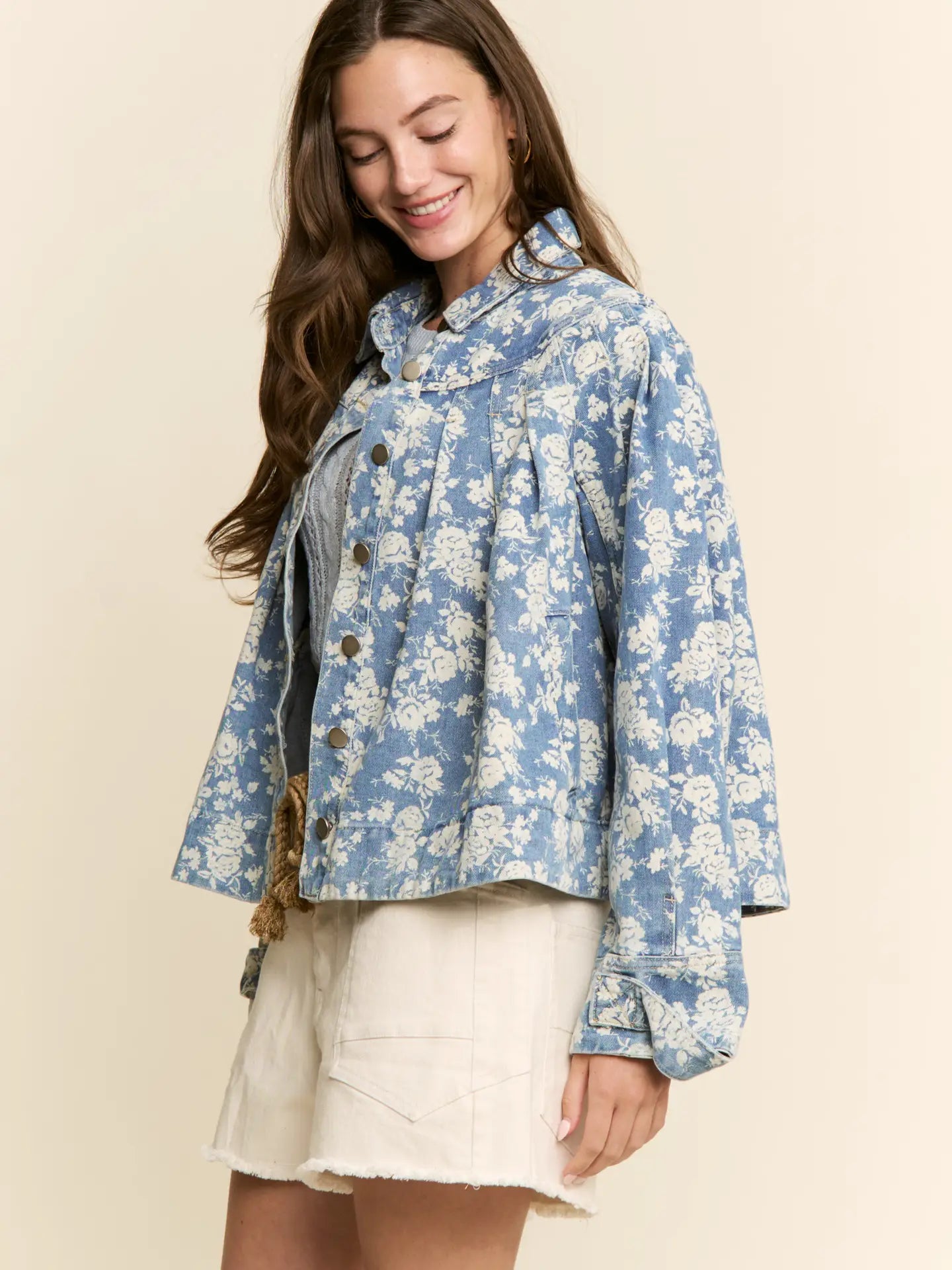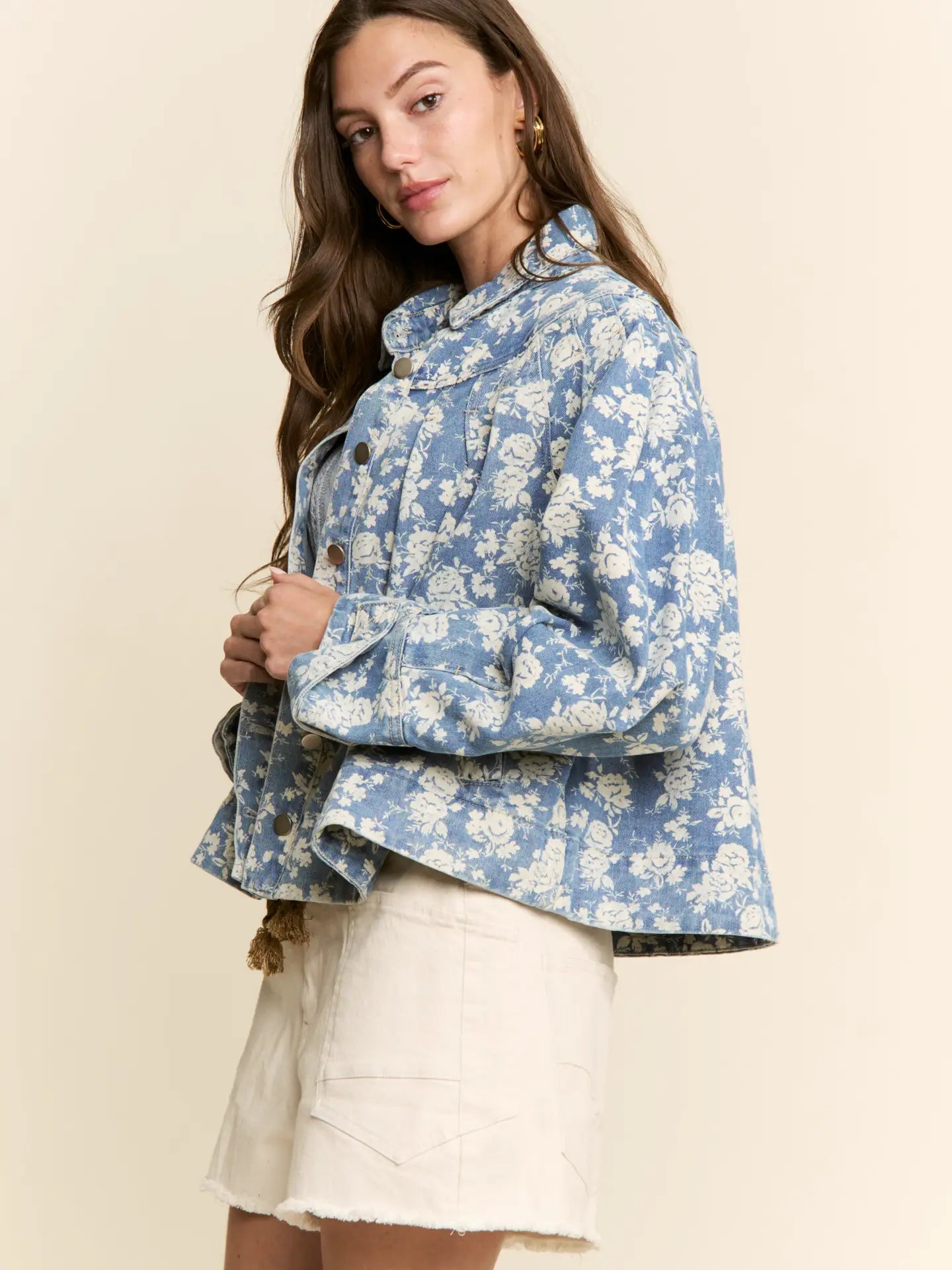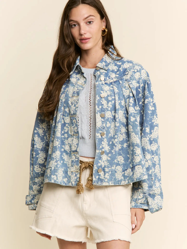 Petals Floral Print Denim Jacket