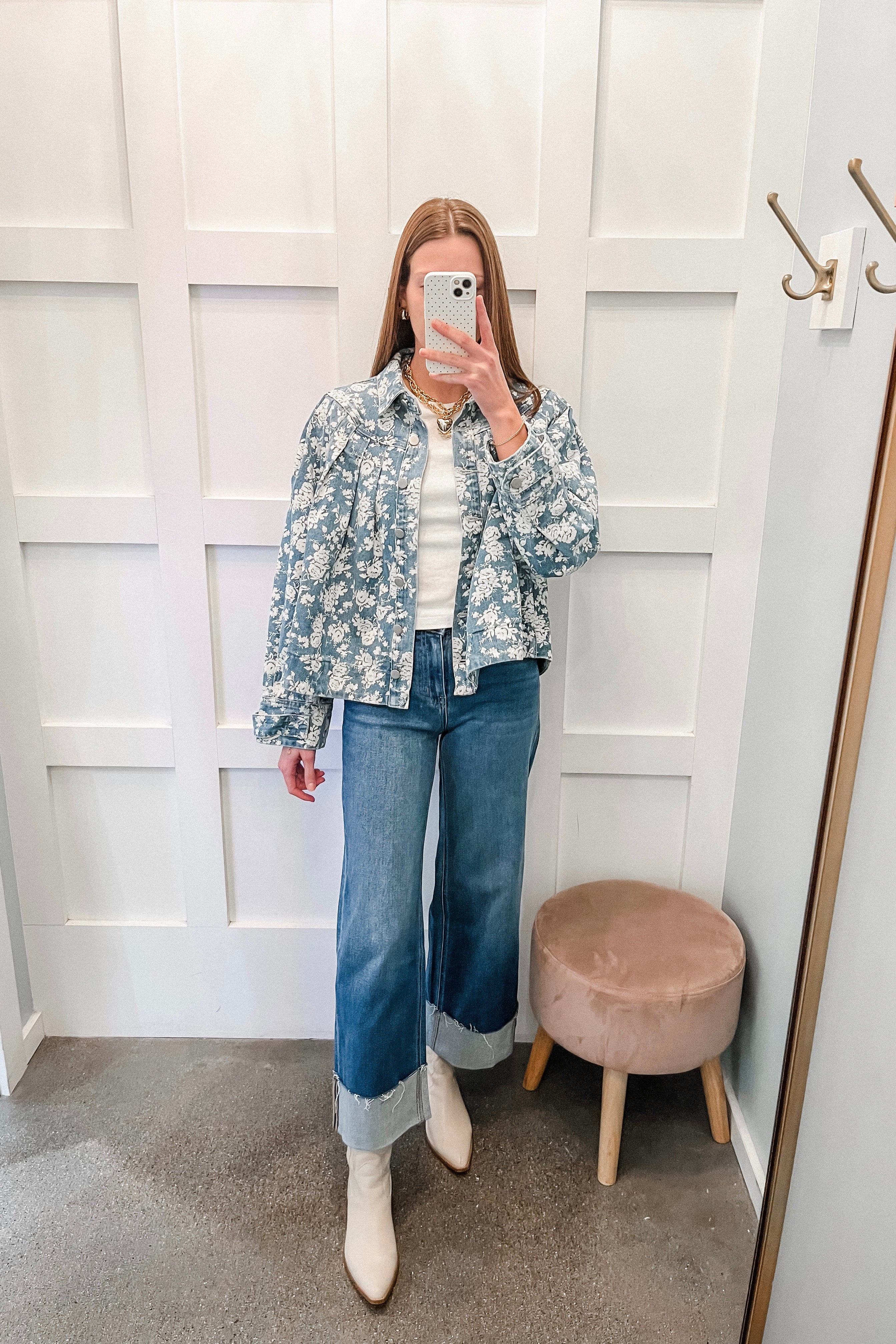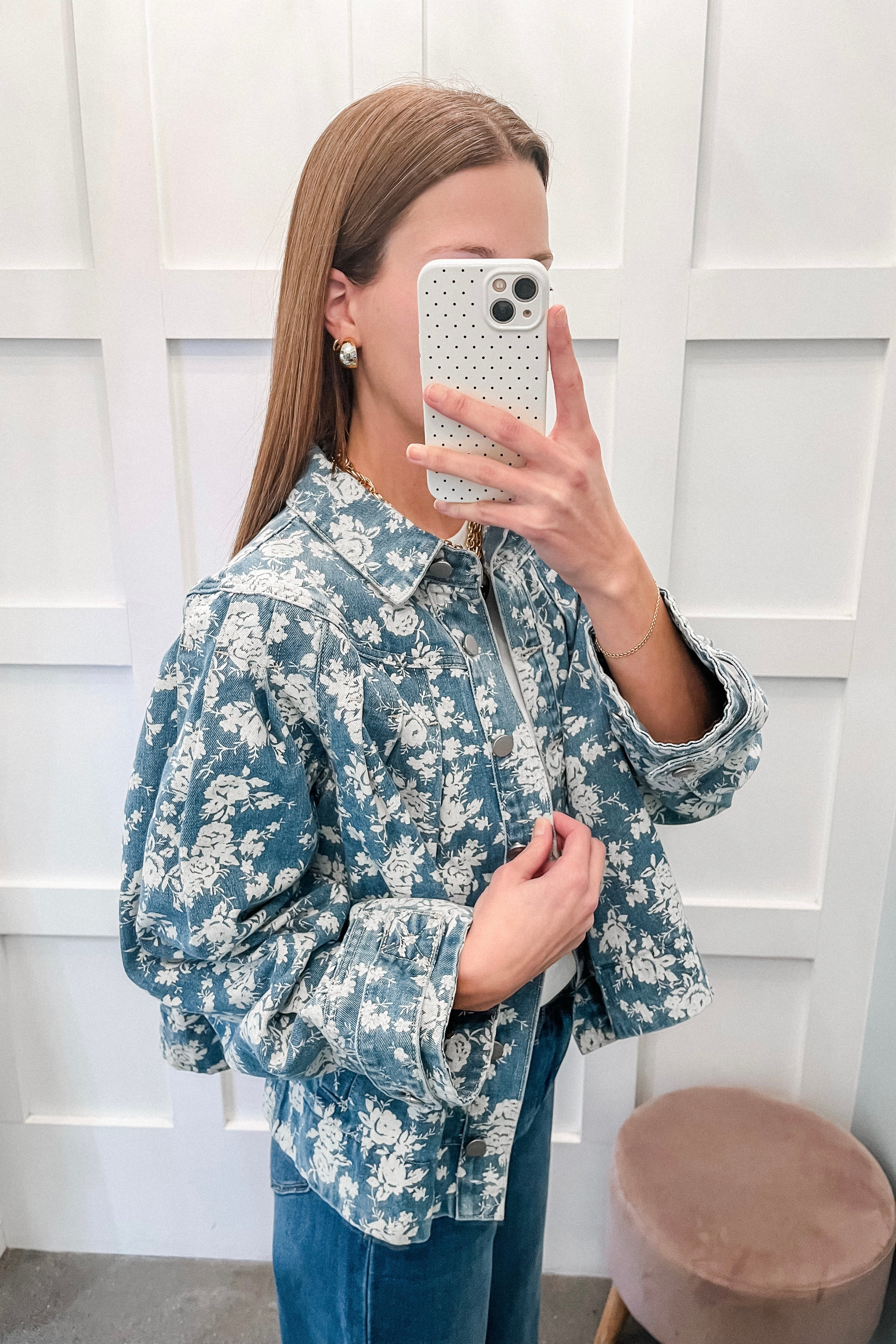 • floral print denim jacket