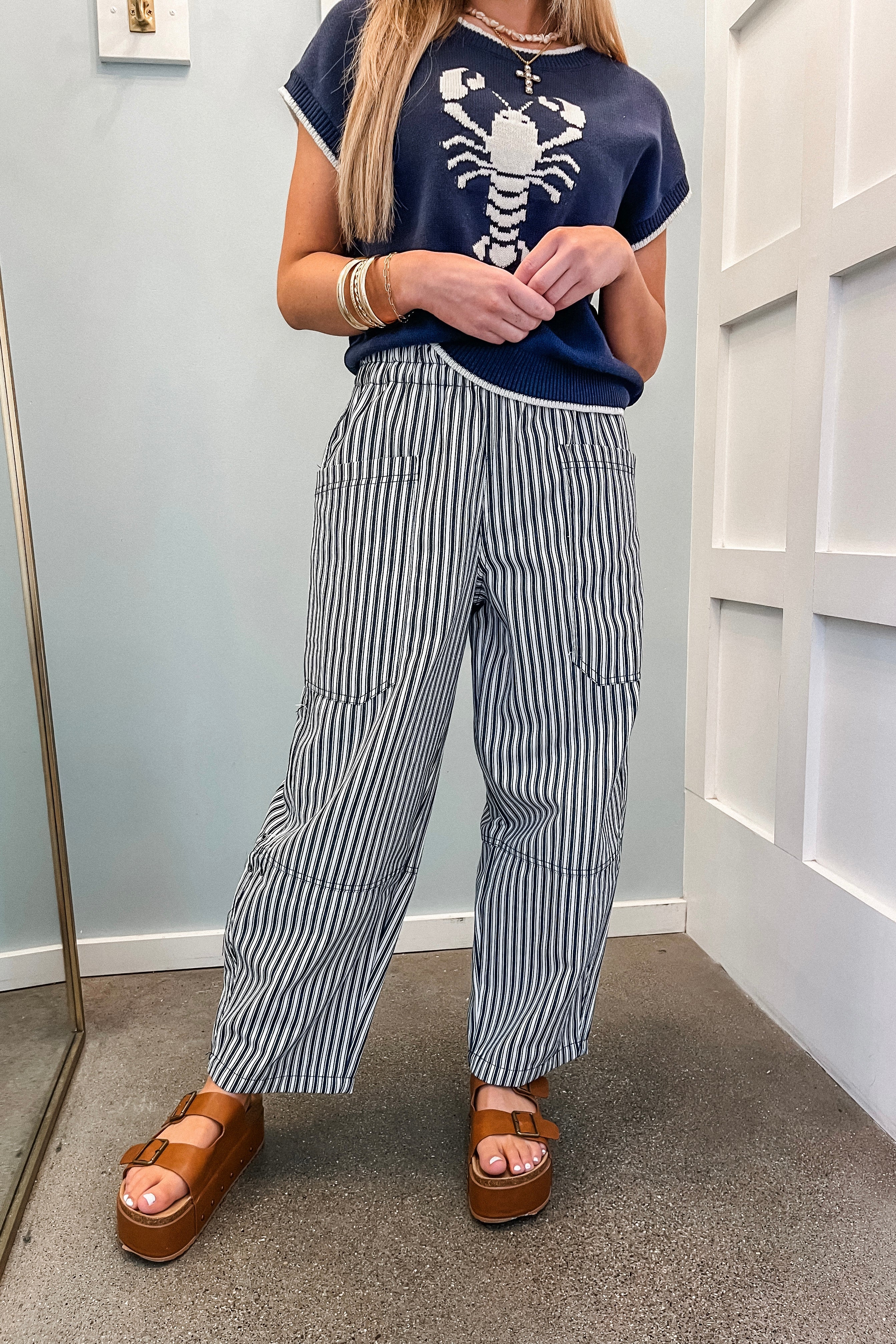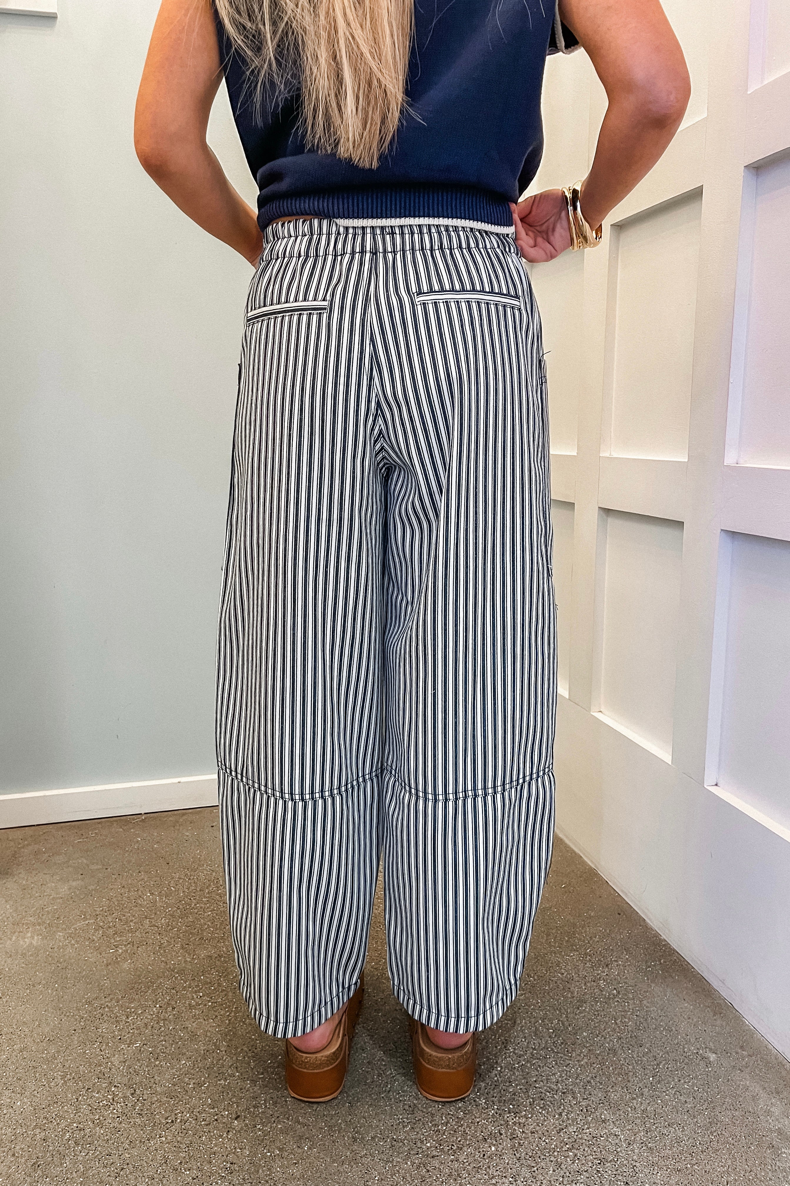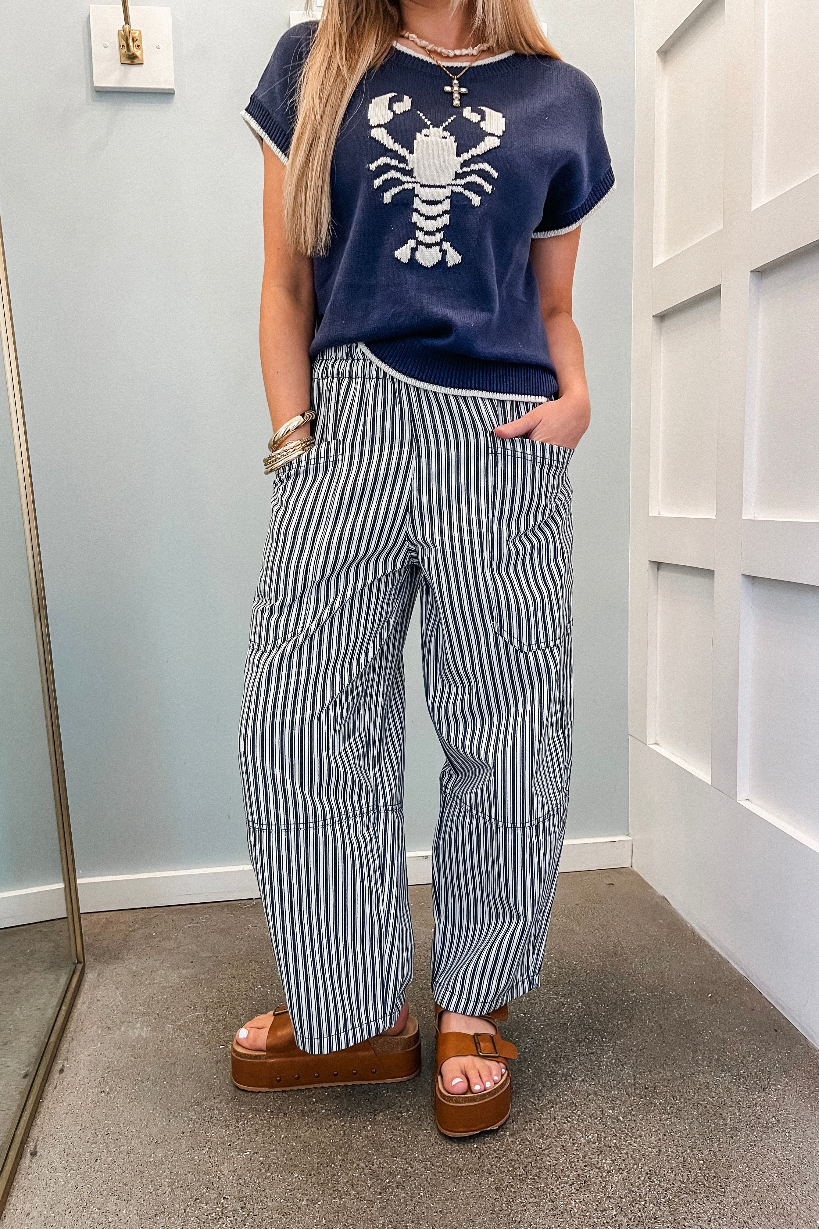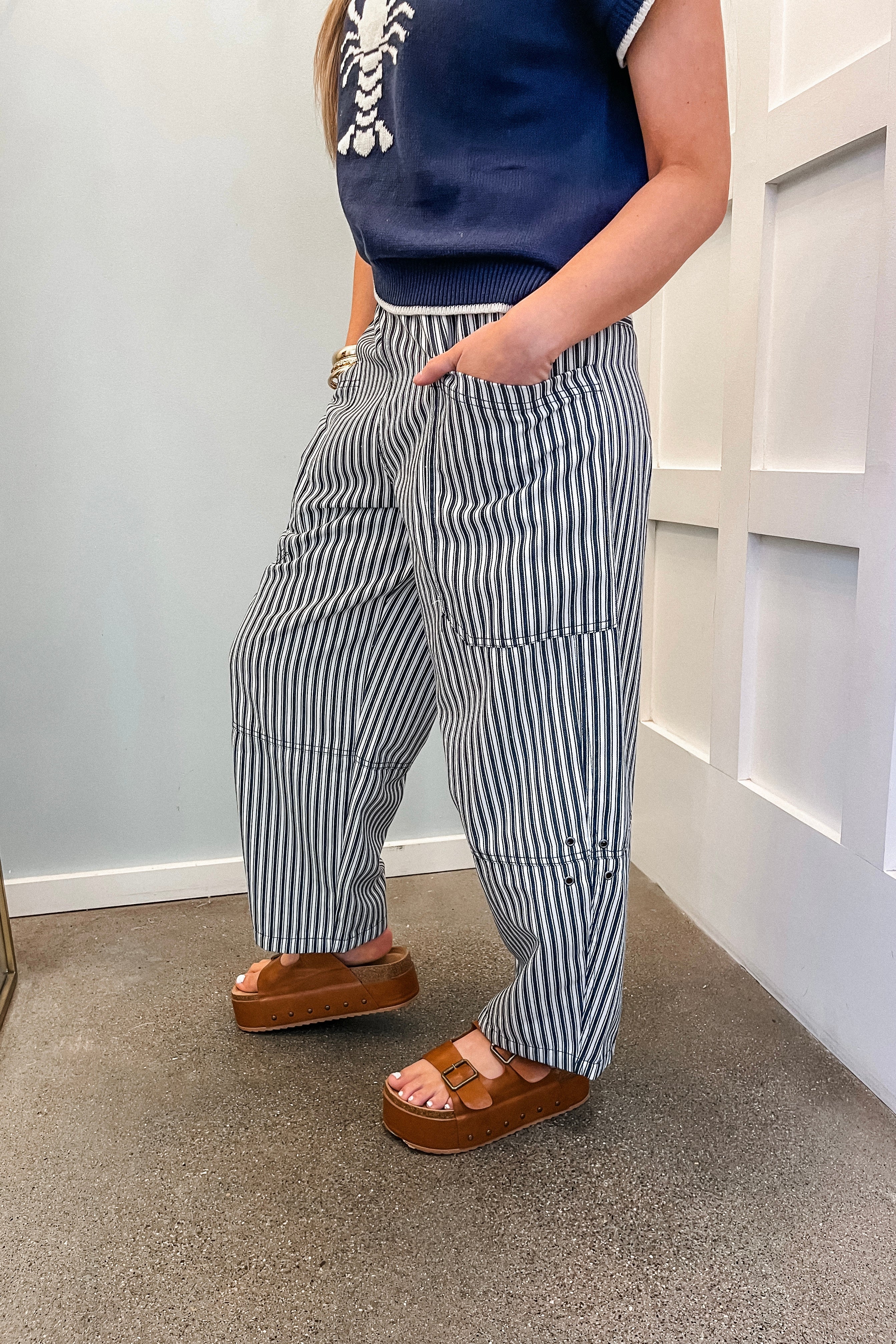 Stripe Scene Wide Leg Pocket Pants - Navy - Small / Navy is backordered and will ship as soon as it is back in stock.