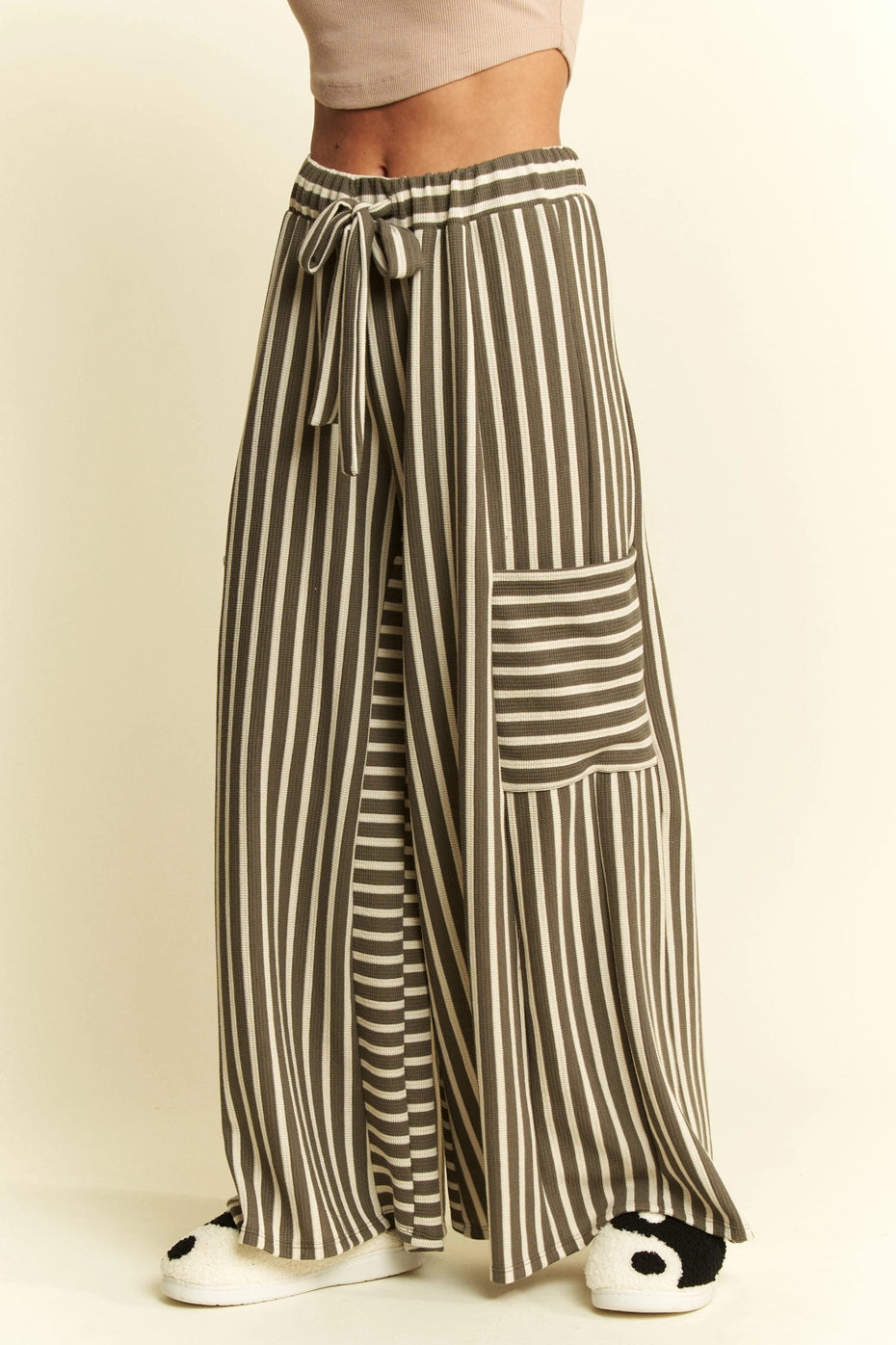 Stripe Wide Leg Pants - Olive