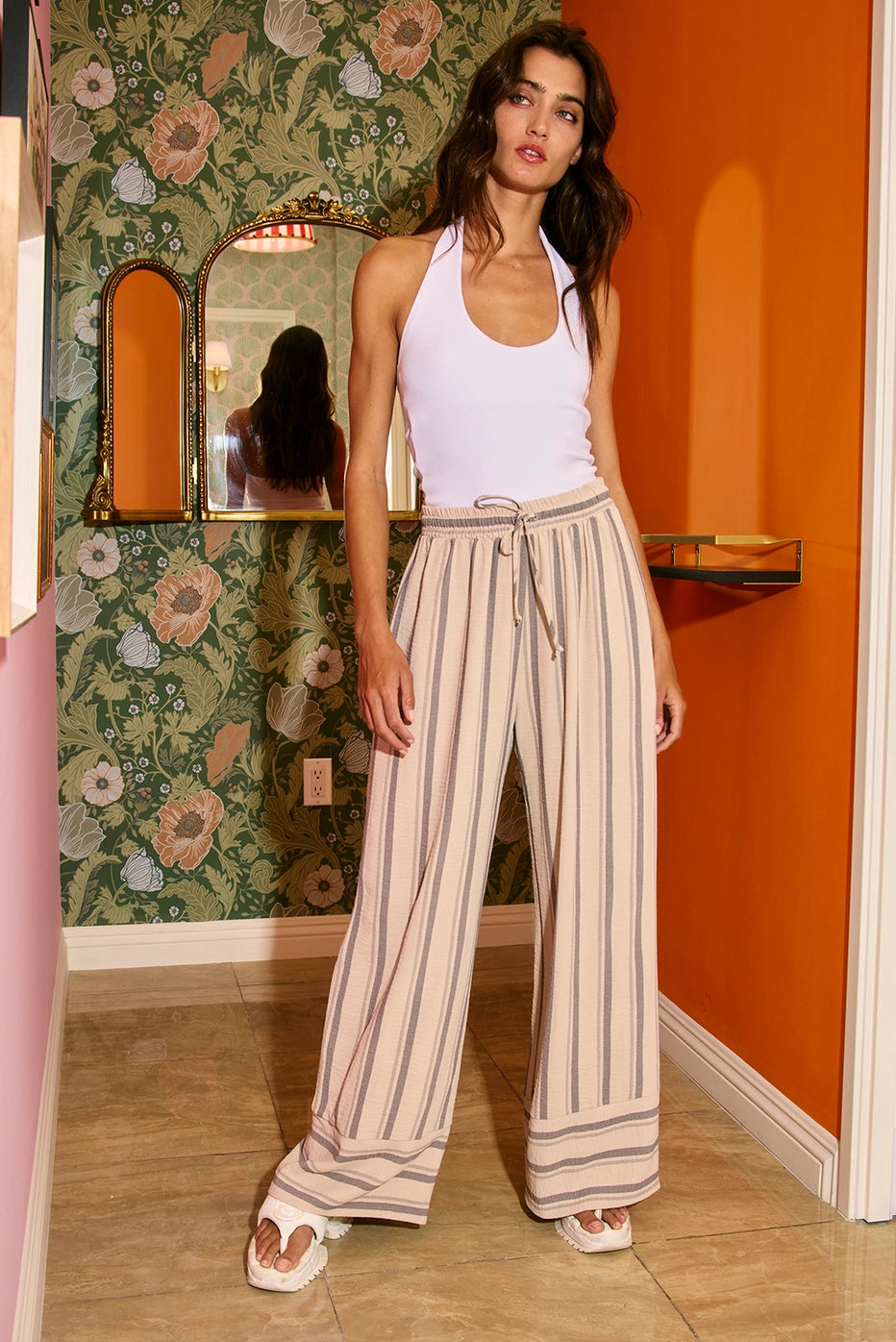 Undercover Striped Drawstring Pants - Taupe / Small is backordered and will ship as soon as it is back in stock.