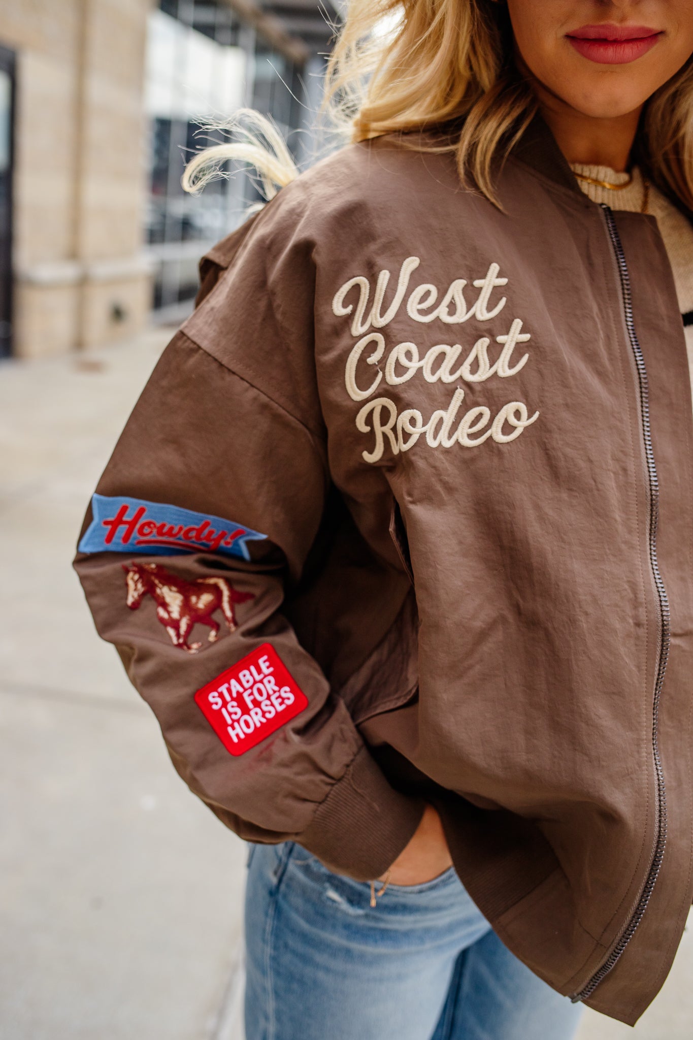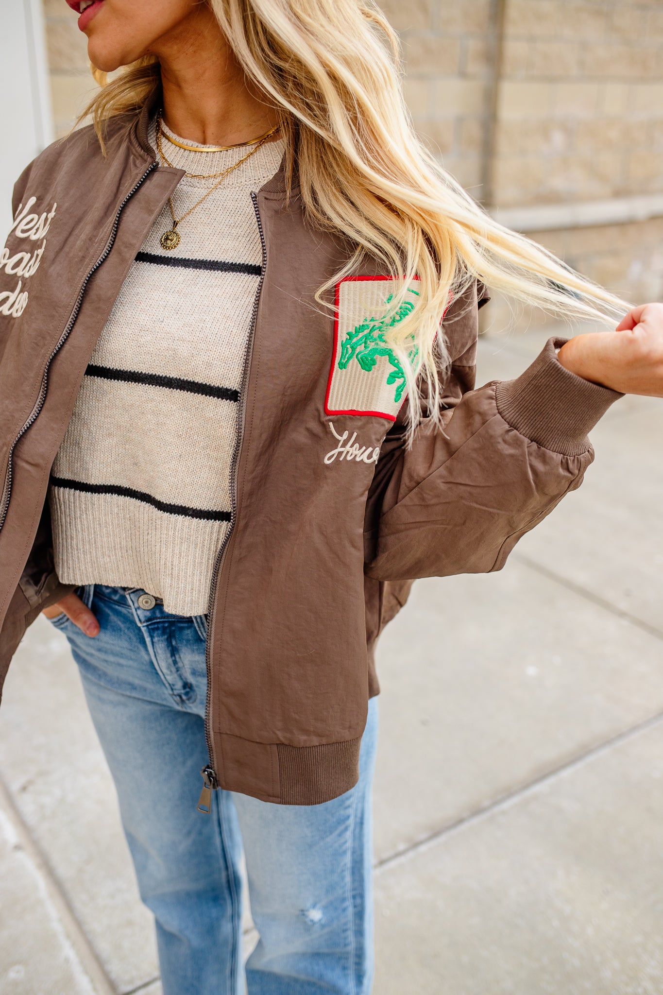 West Coast Embroidered Jacket - Mocha Mousse / Small is backordered and will ship as soon as it is back in stock.