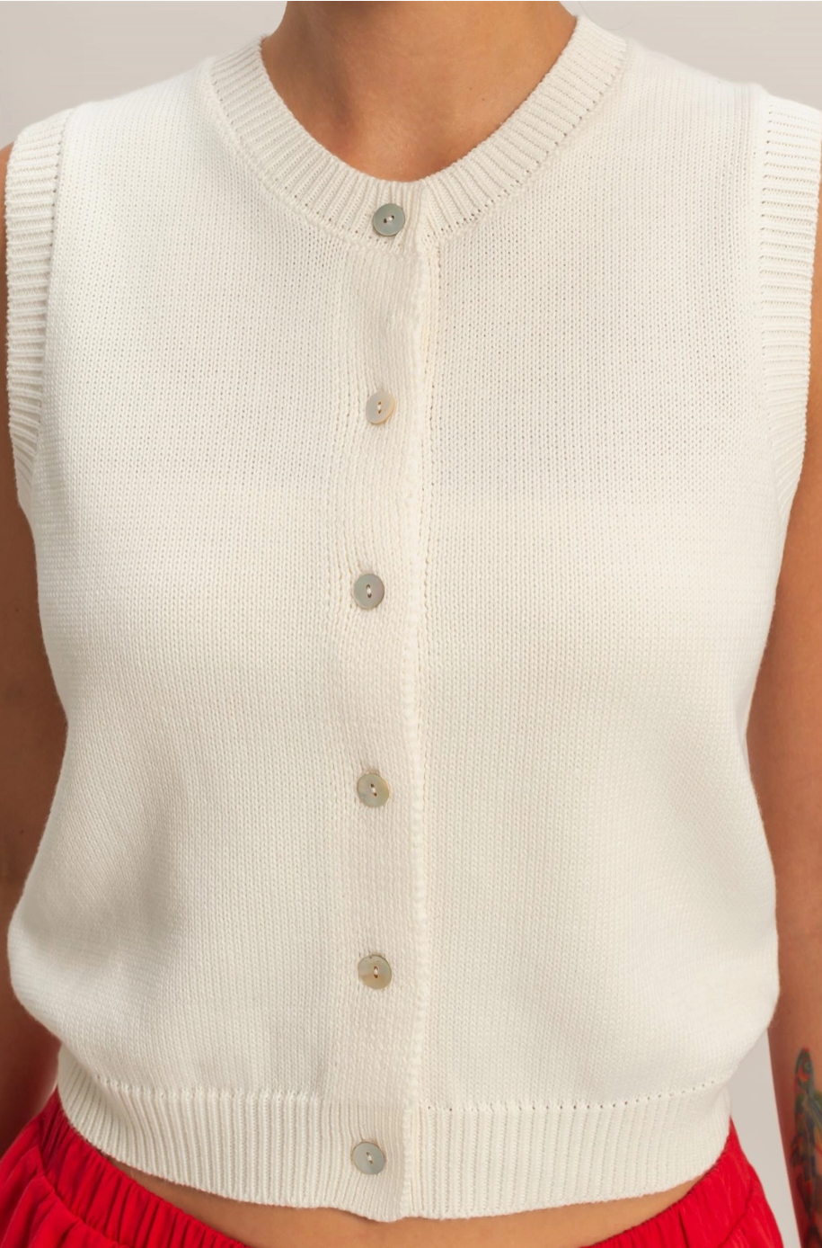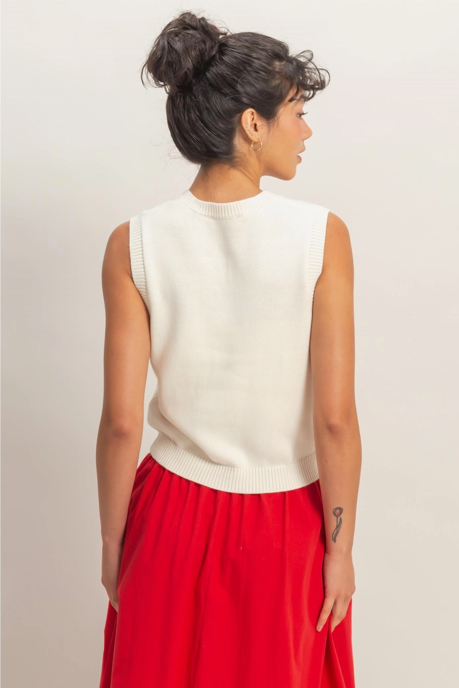 Soft, sweet, and effortlessly cute — this knit top in whip cream is like wrapping yourself in a cloud. The cotton-acrylic blend keeps it lightweight but cozy, and the neutral tone makes it the easiest piece in your closet to style.